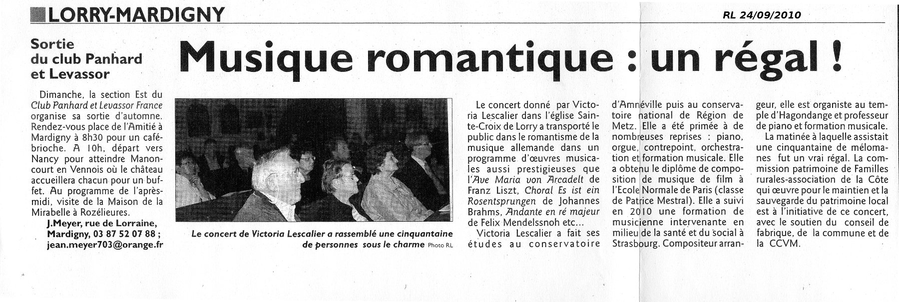 Après la conférence d’Olivier Schmitt, Victoria Lescalier, jeune musicienne de talent, primée à de nombreuses reprises tant pour ses talents d’interprète que de compositeur arrangeur, nous a proposé un programme de musique romantique, style musical auquel se prête si bien l’orgue Link.