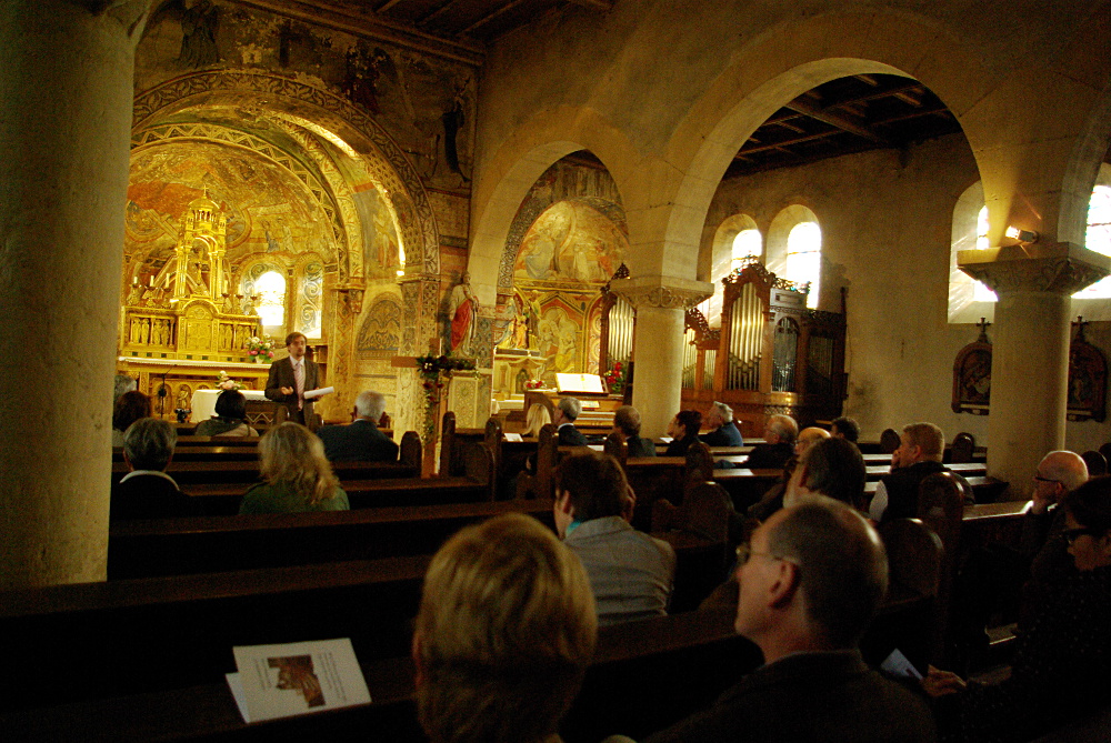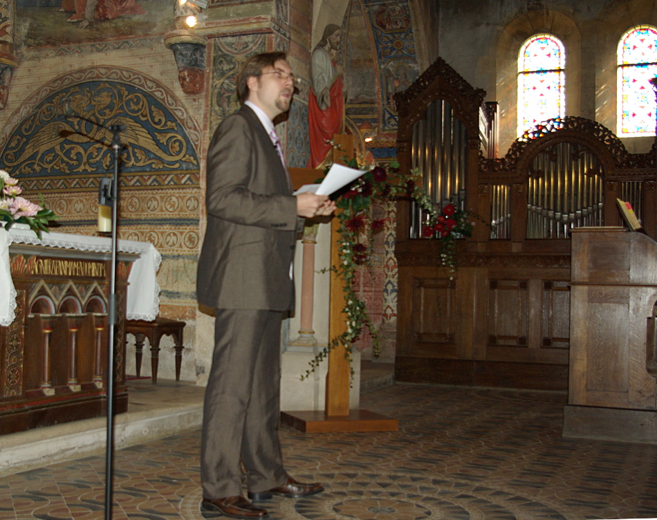 En cette occasion, Olivier Schmitt a présenté une conférence intitulée La facture d’orgues en Moselle au XIXe siècle : au carrefour des influences, entre France et Allemagne. Olivier Schmitt est docteur de l’Université de Paris IV-Sorbonne pour sa thèse sur Les Mutations de l’orgue en France et en Alsace-Moselle entre 1840 et 1914.