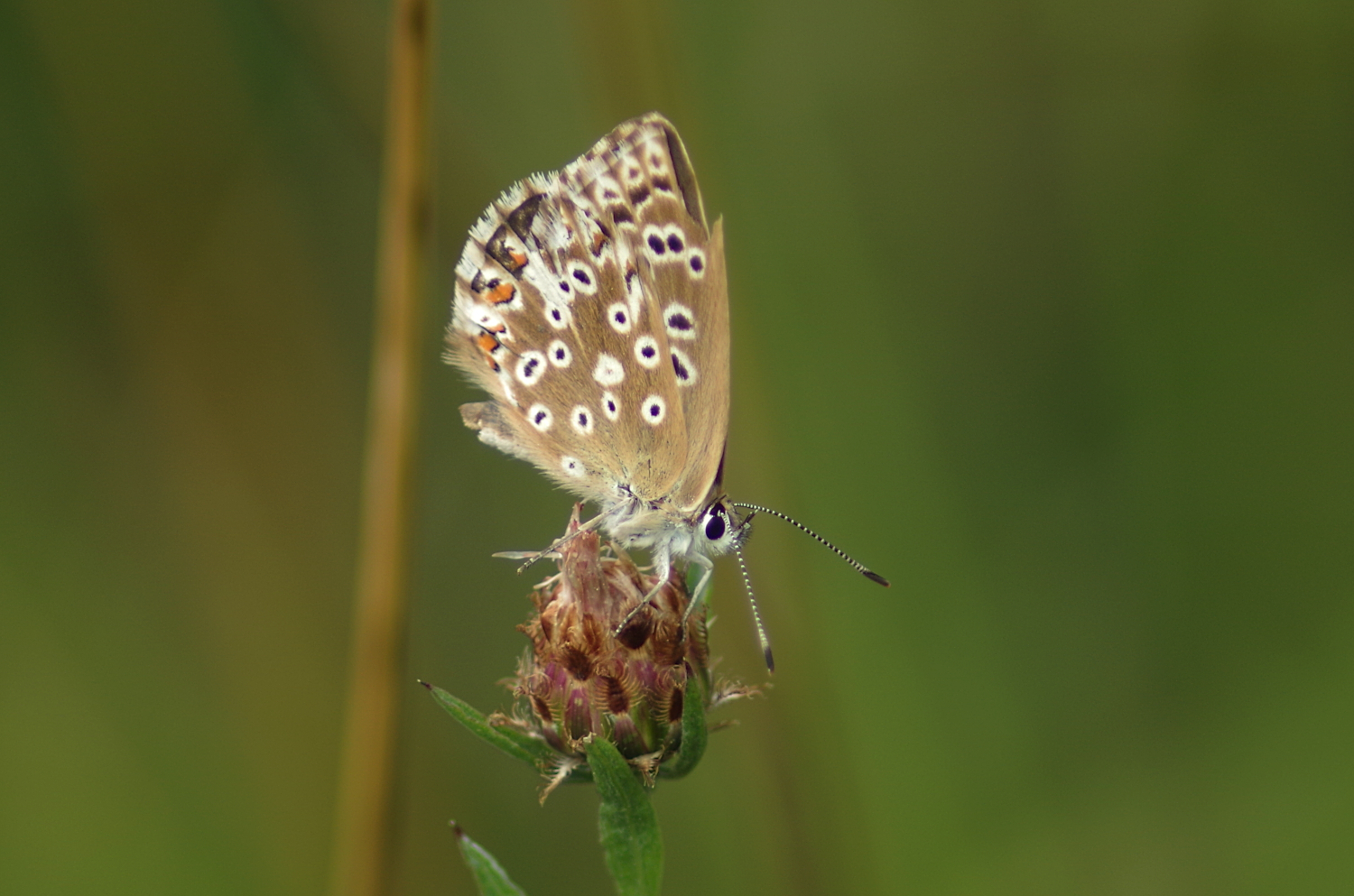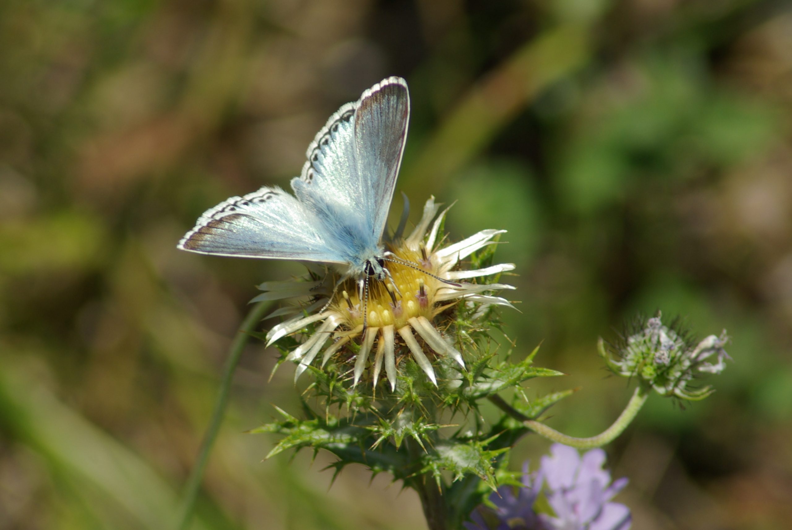 Papillon diurne ; Envergure : 30 à 35 mm ; Habitat : prairies sèches, pelouses rases fleuries, sols calcaires secs et ensoleillés