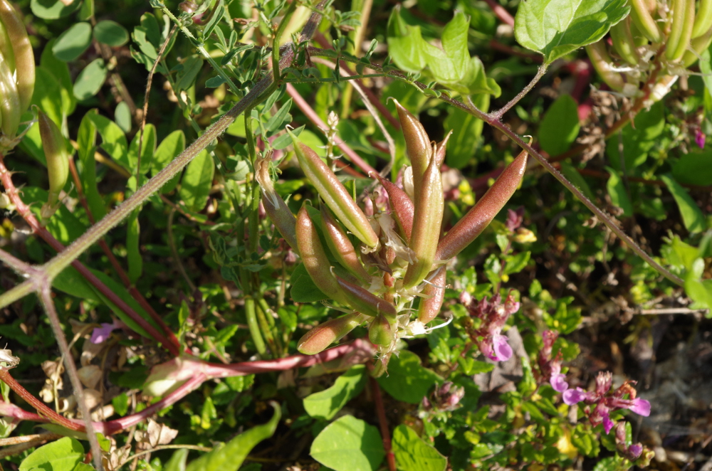 Plante vivace rampante ; Longueur : jusqu’à un mètre ; Habitat : lisières, bords des chemins, sur sols calcaires secs