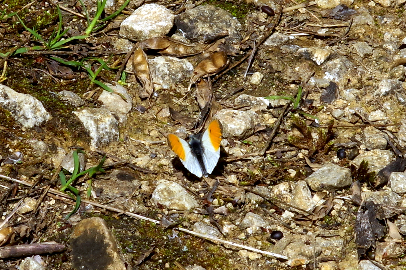 Le mâle de ce joli papillon est très visible en vol avec ses taches orangées mais il est plus difficile de le trouver posé pour le photographier.