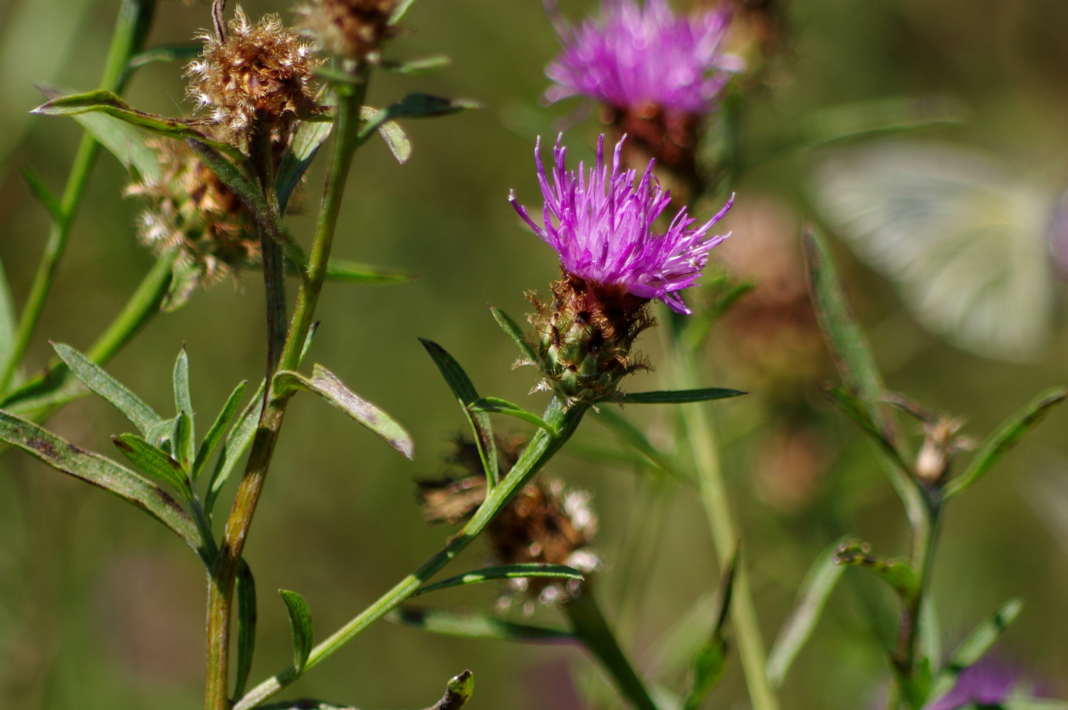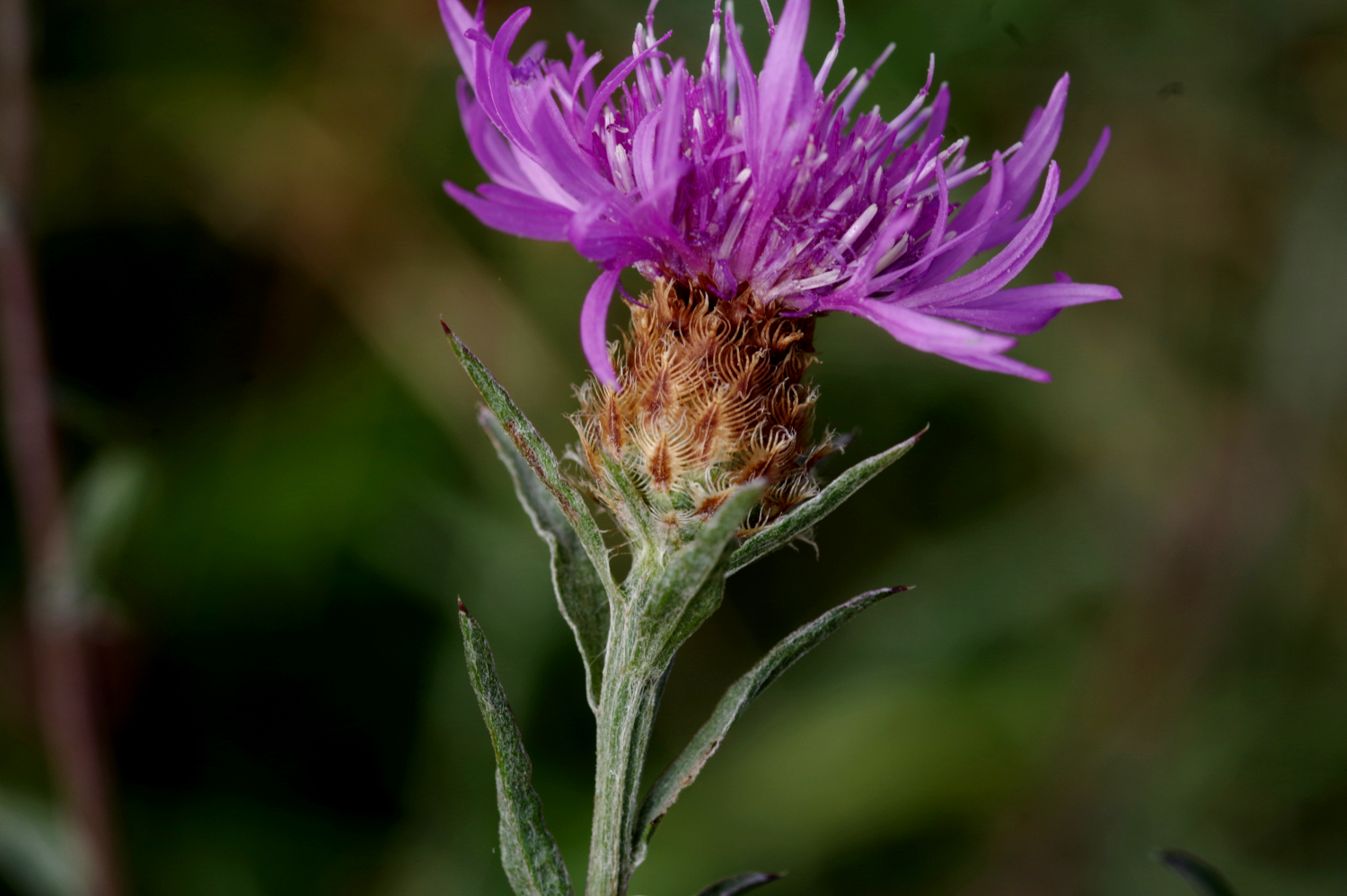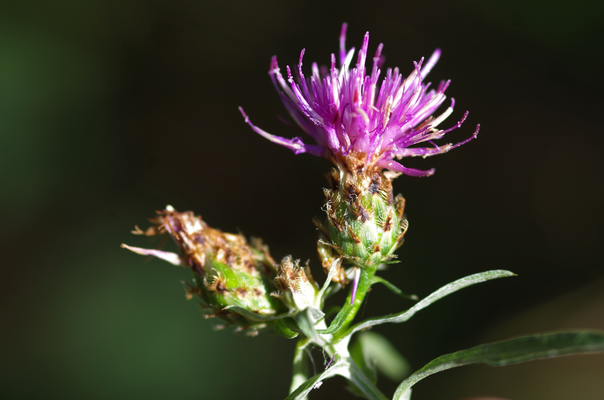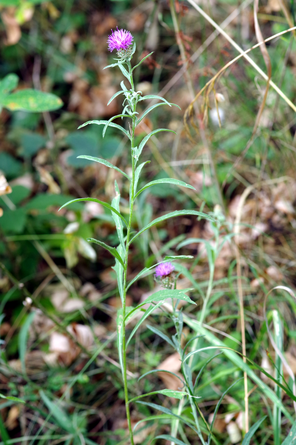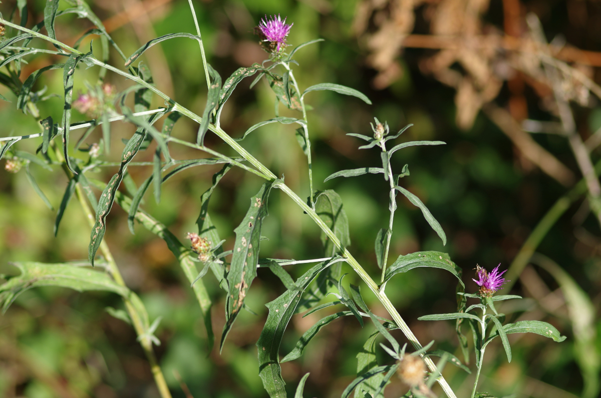 Moins commune que la Centaurée jacée, cette variante est ici en revanche dans son habitat préféré, le long d’un chemin ombragé. En dehors de la taille, c’est par les bractées que l’on distingue ces deux Centaurées. Elle porte de nombreux noms vulgaires : Centaurée des bois, Centaurée de Debeaux, Centaurée des prés, Centaurée tardive.