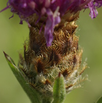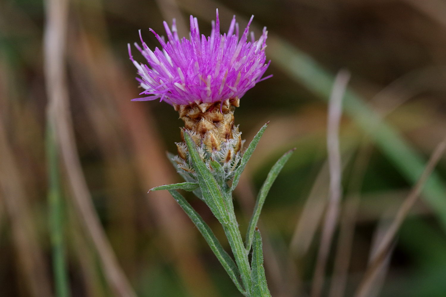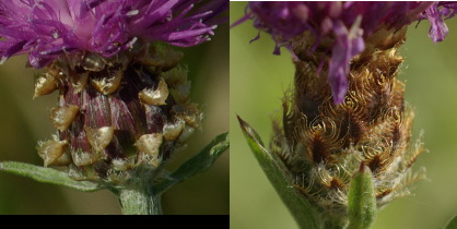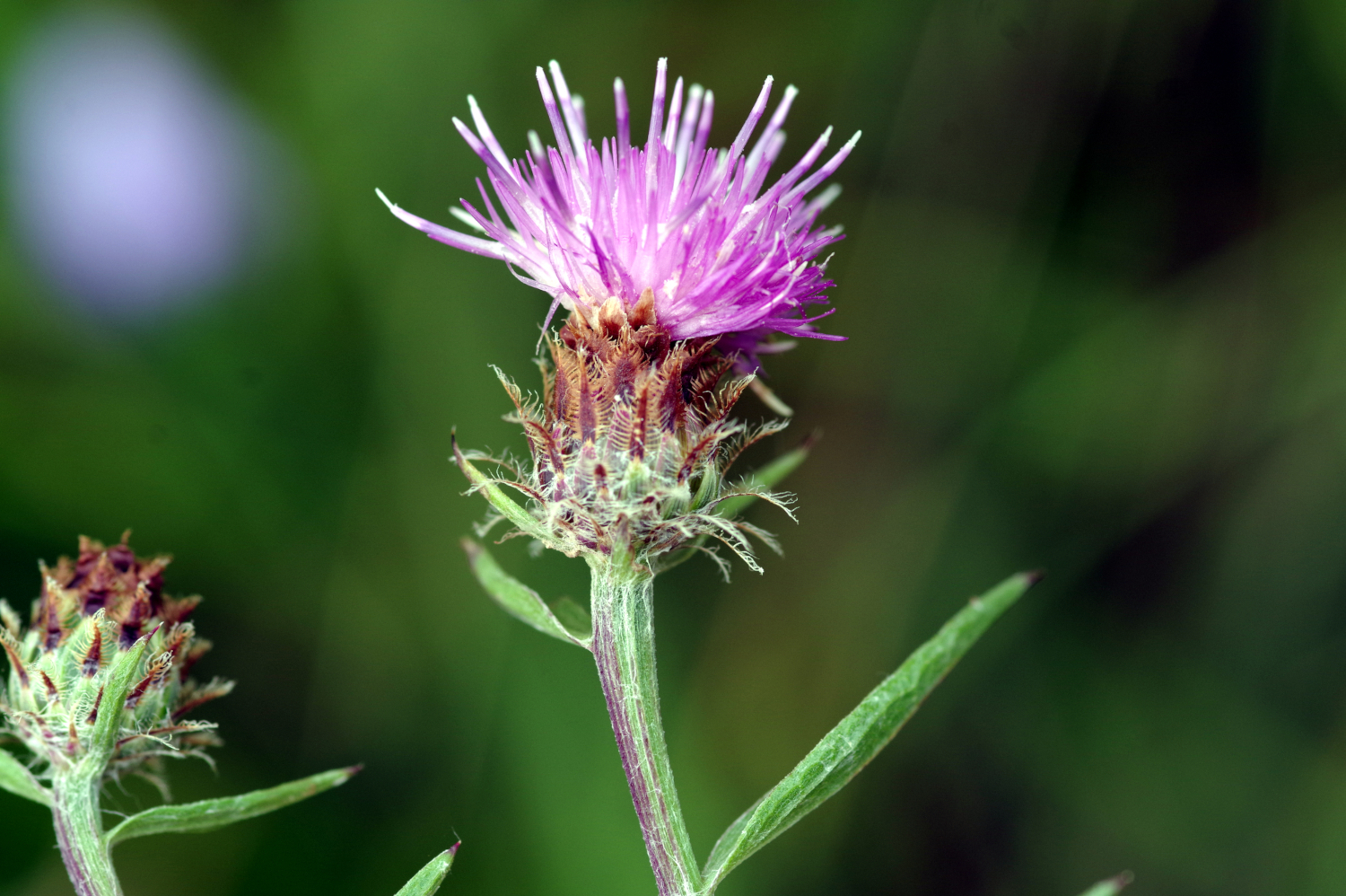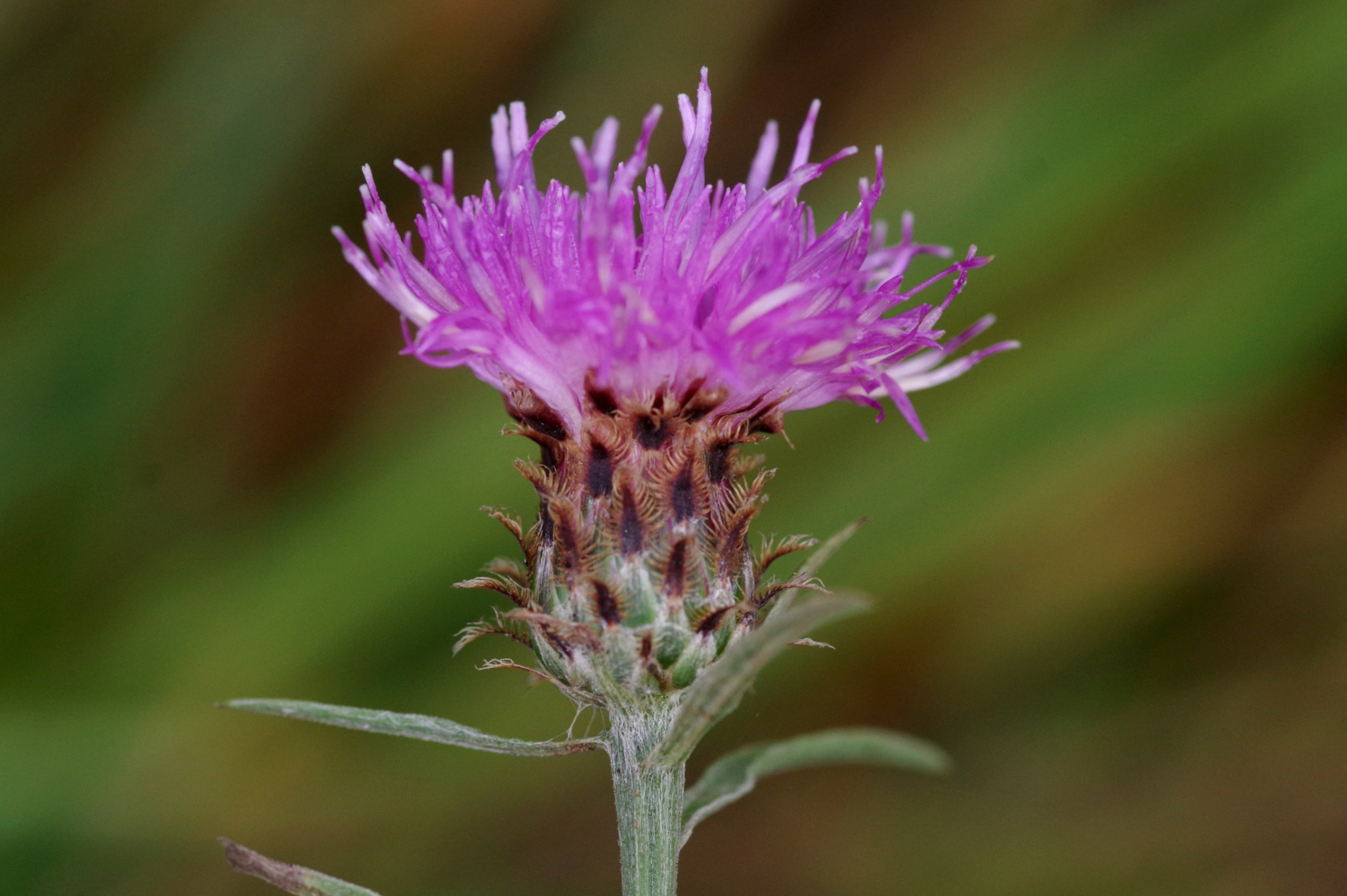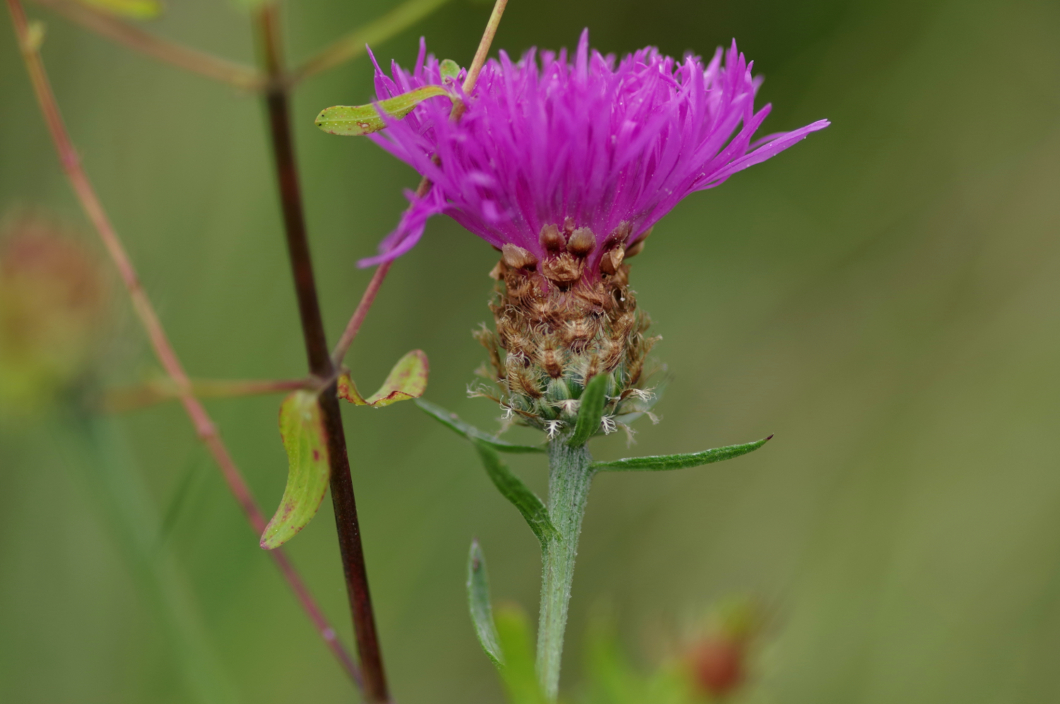 Moins commune que la Centaurée jacée, cette variante est ici en revanche dans son habitat préféré, le long d’un chemin ombragé. En dehors de la taille, c’est par les bractées que l’on distingue ces deux Centaurées. Elle porte de nombreux noms vulgaires : Centaurée des bois, Centaurée de Debeaux, Centaurée des prés, Centaurée tardive.