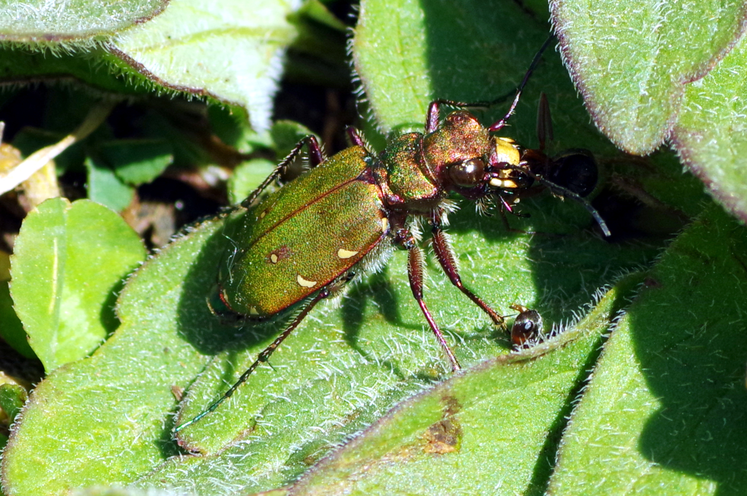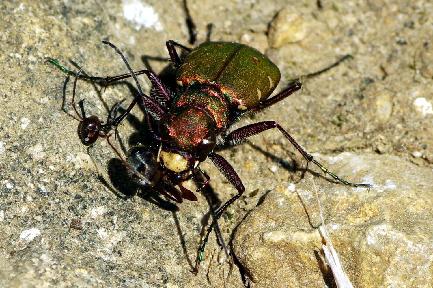 Ce coléoptère est un prédateur qui chasse avec agilité, à la course, au vol, parfois des vols très courts, comme des sauts. Il cisaille ses proies avec ses pinces. On le voit aux heures les plus ensoleillées.