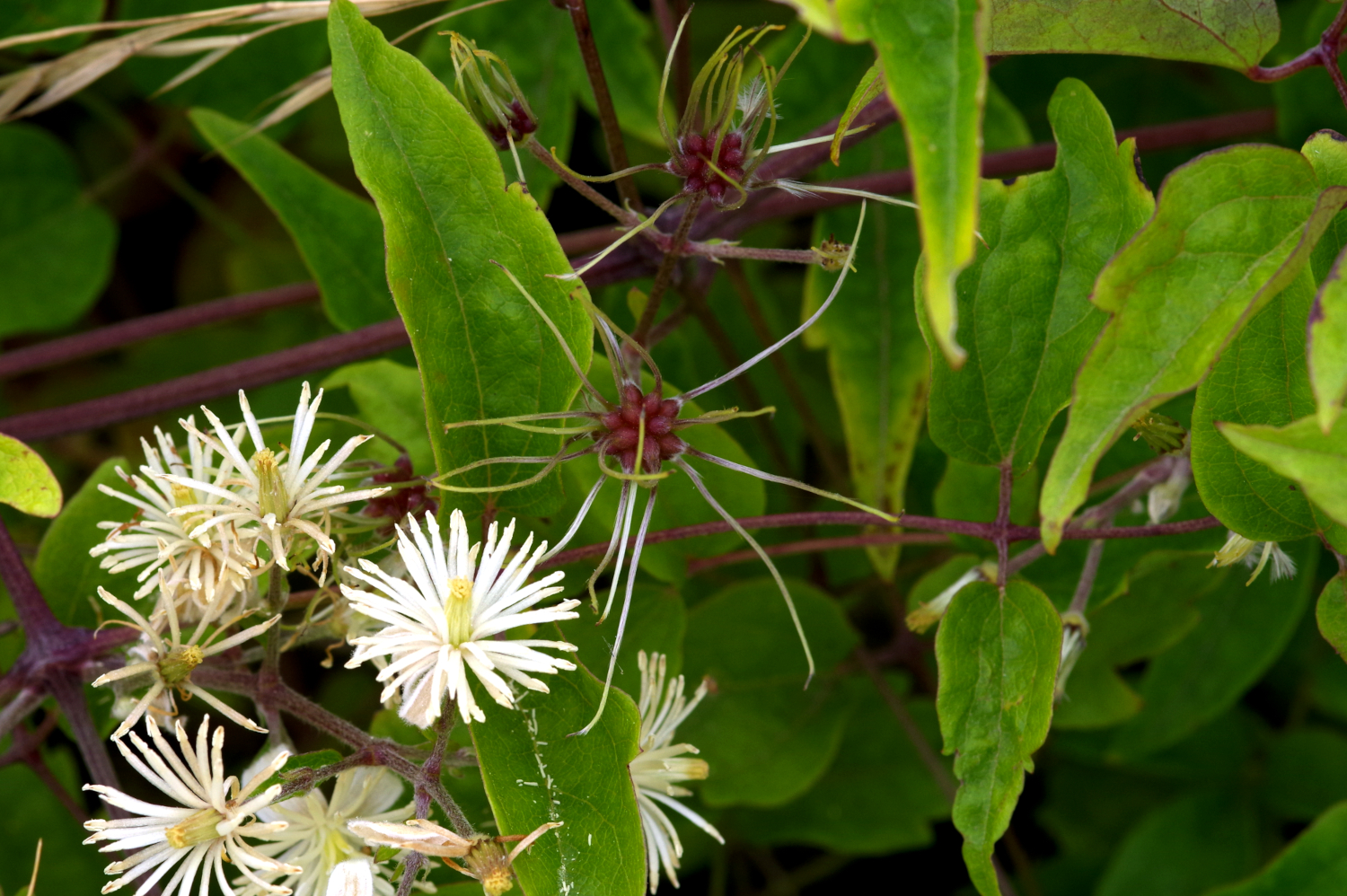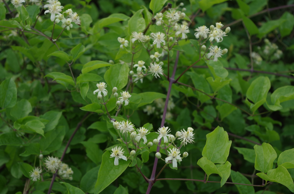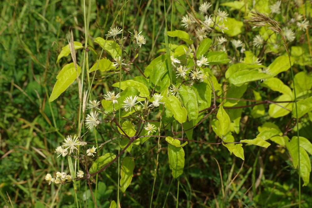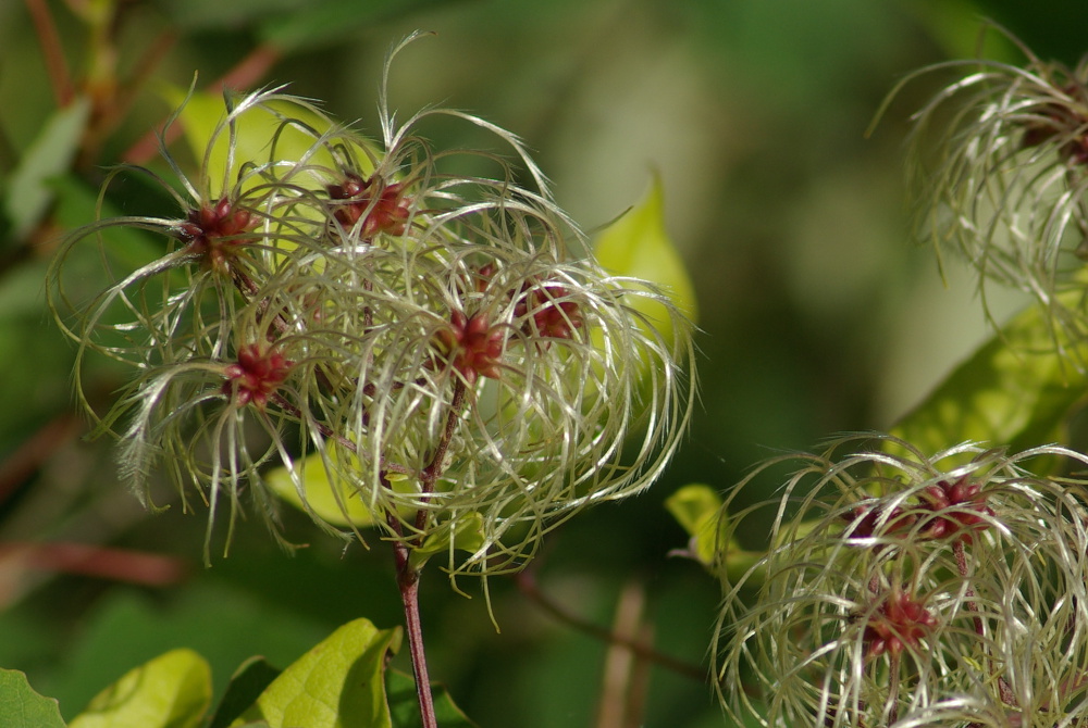 Par endroits, cette liane a tendance à envahir et recouvrir les autres végétaux. Ses fleurs sont odorantes. La Clématite de la vigne blanche -qui est son autre nom, vitalba– attire le regard du promeneur aussi bien à la saison des fleurs qu’à celle de ses fruits.