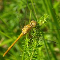 Libellule ; Longueur : 36-45 mm ; Habitat : eaux stagnantes ; dans les régions septentrionales, elle recherche des microclimats chauds, abrités et riches en végétation