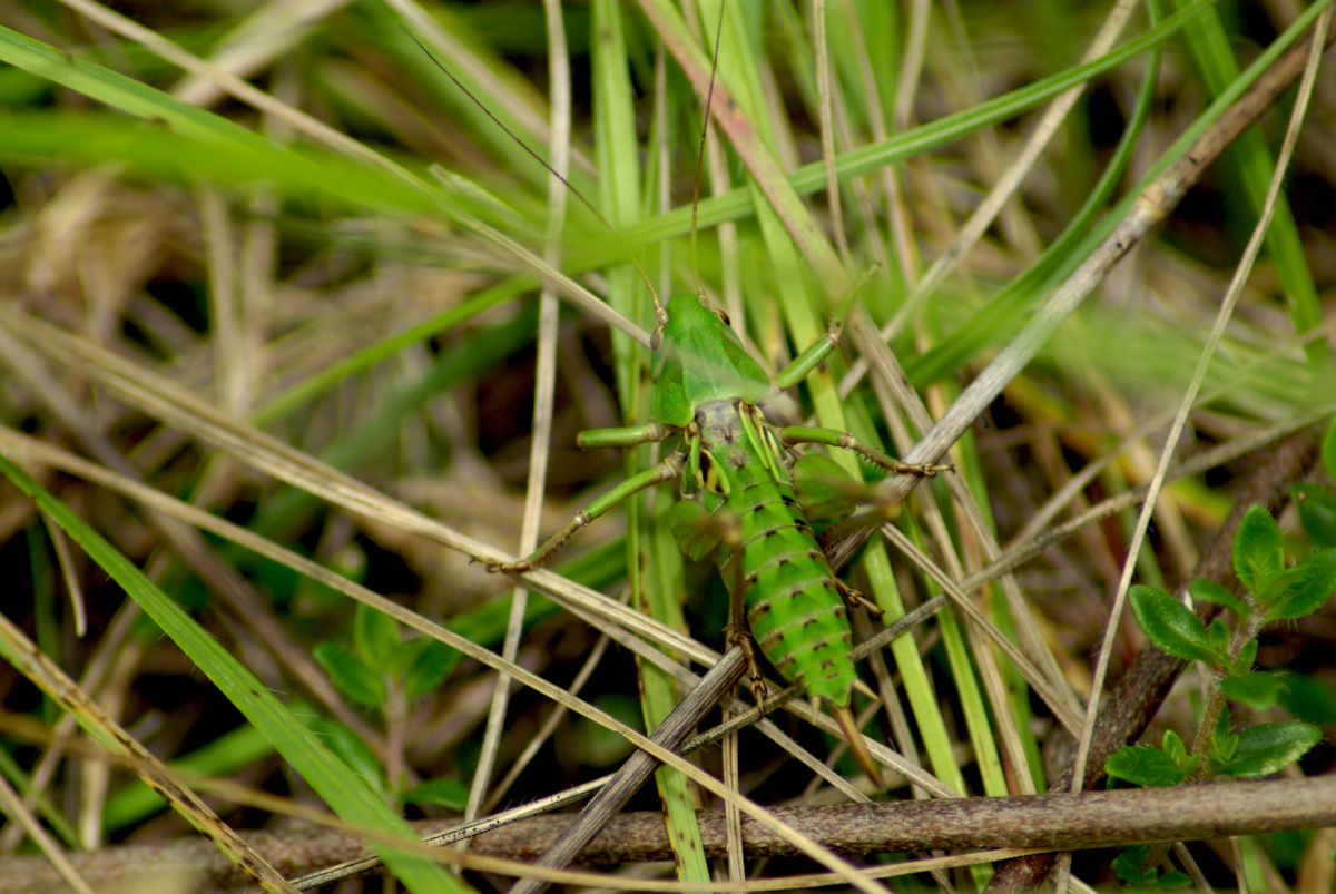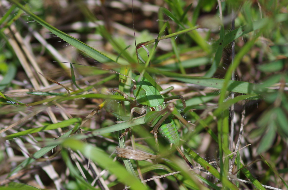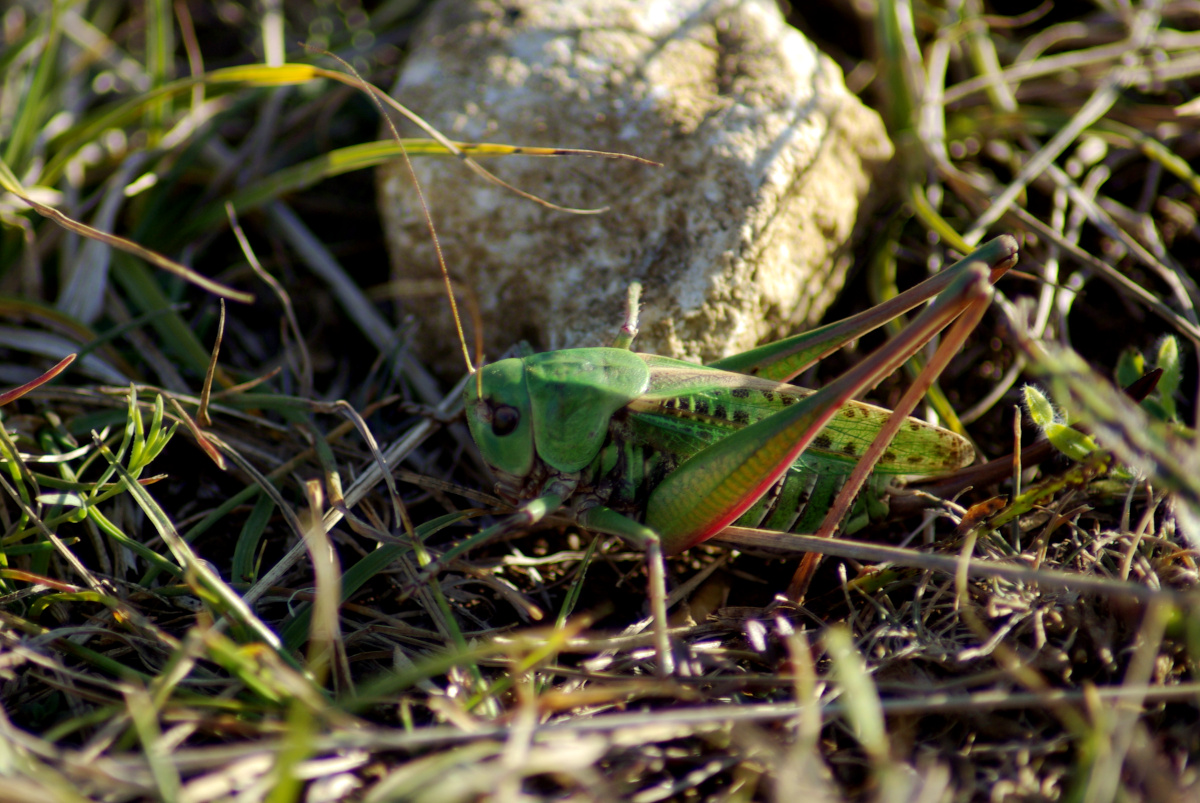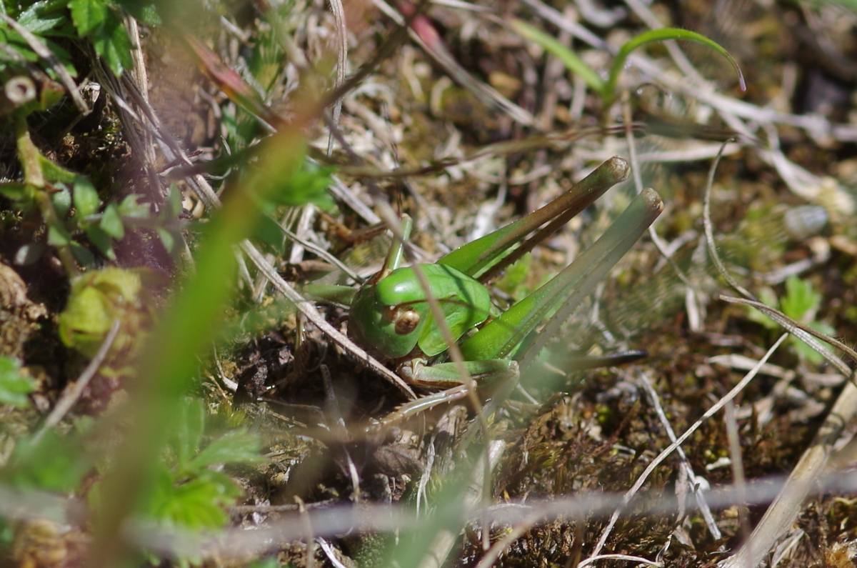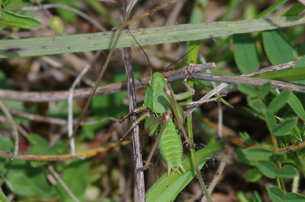 Sauterelle : Taille : 24 à 38 mm pour le mâle, 26 à 44 mm pour la femelle ; Habitat : pelouses montagnardes et coteaux calcaires, prés secs ou humide, champs, pelouses calcaires,…
