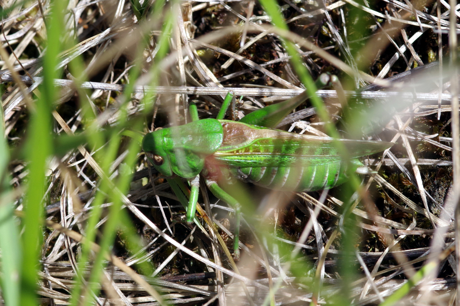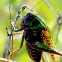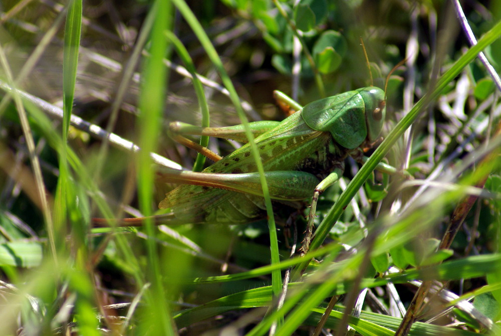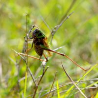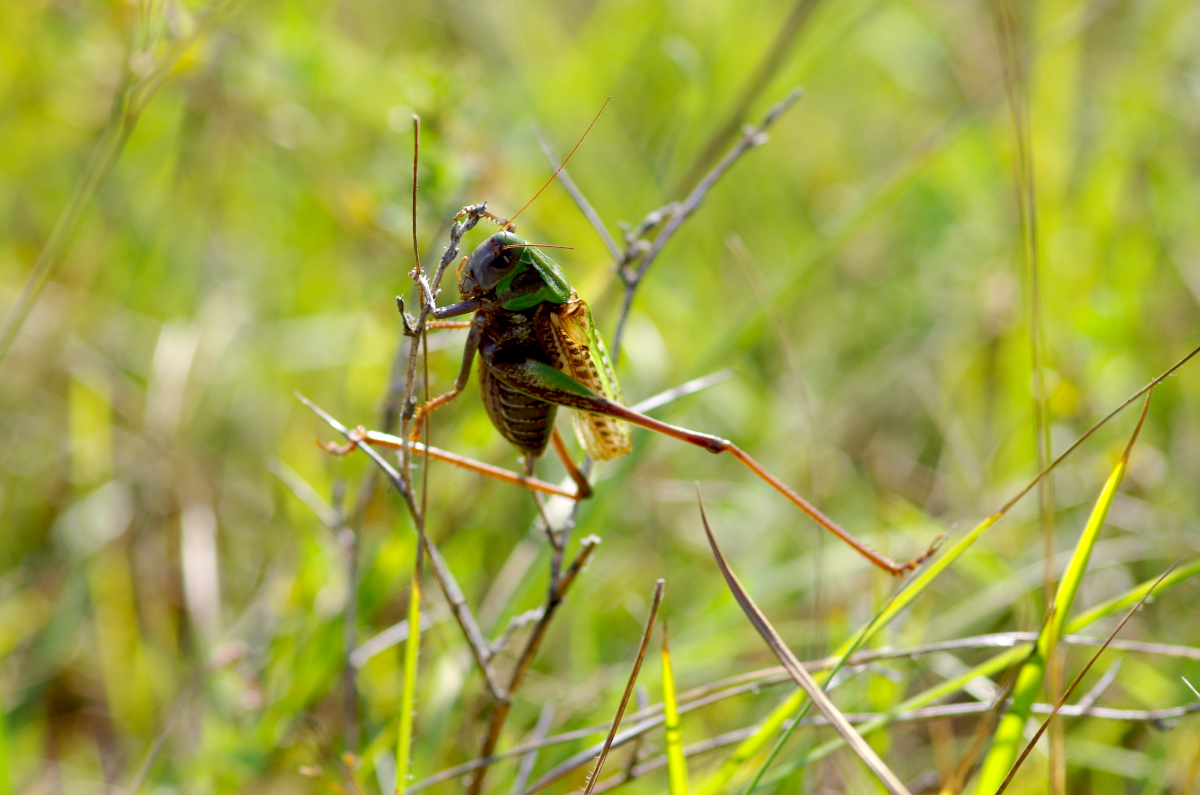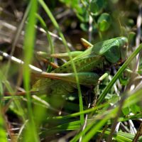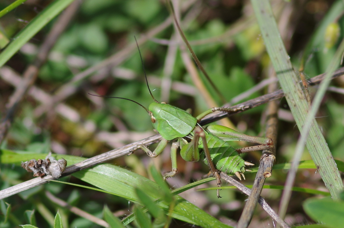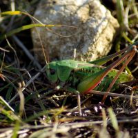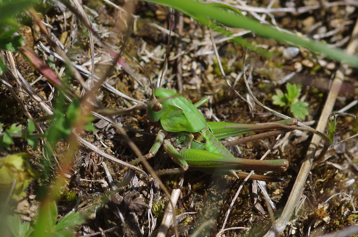 Sauterelle : Taille : 24 à 38 mm pour le mâle, 26 à 44 mm pour la femelle ; Habitat : pelouses montagnardes et coteaux calcaires, prés secs ou humide, champs, pelouses calcaires,…