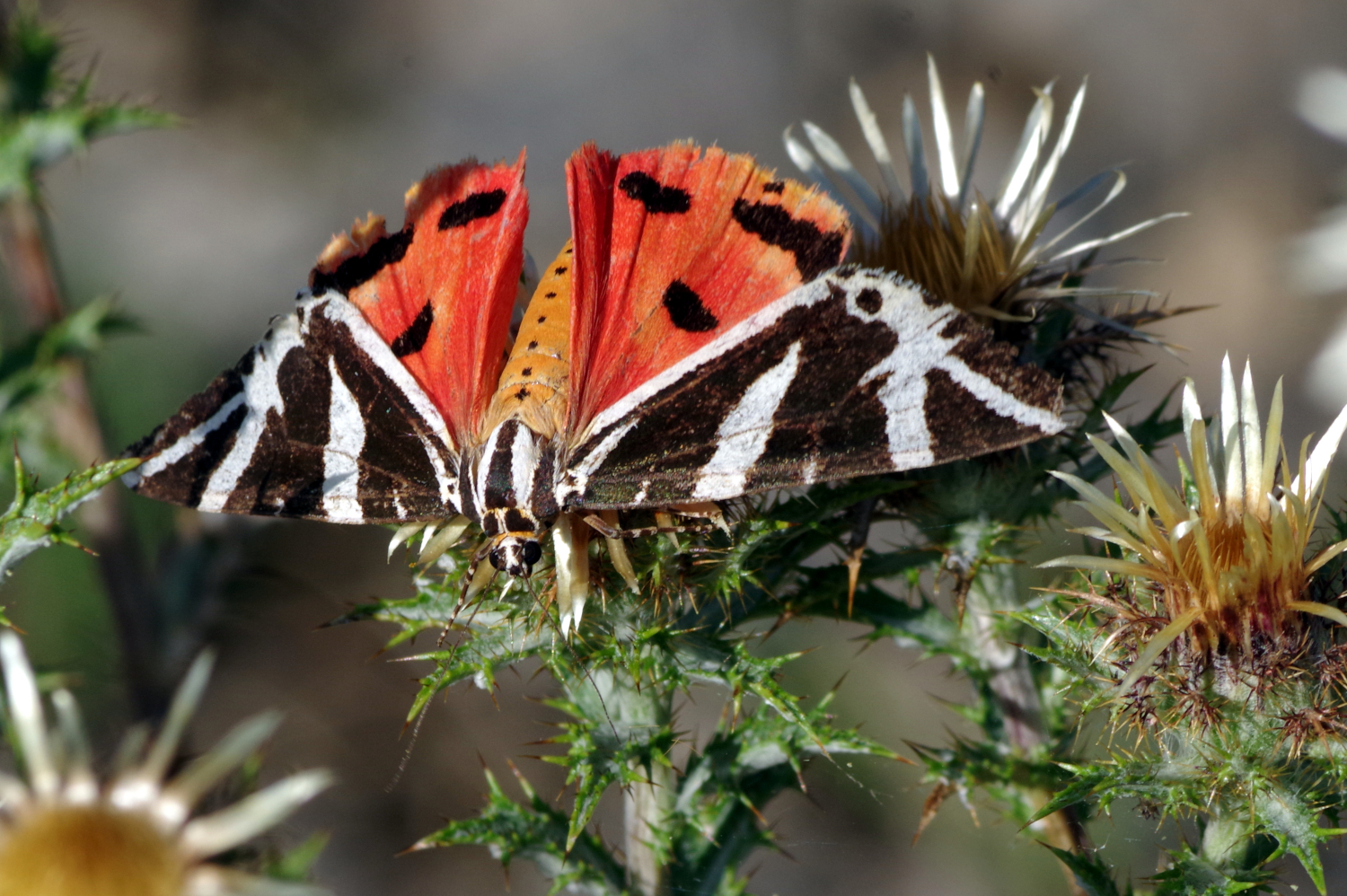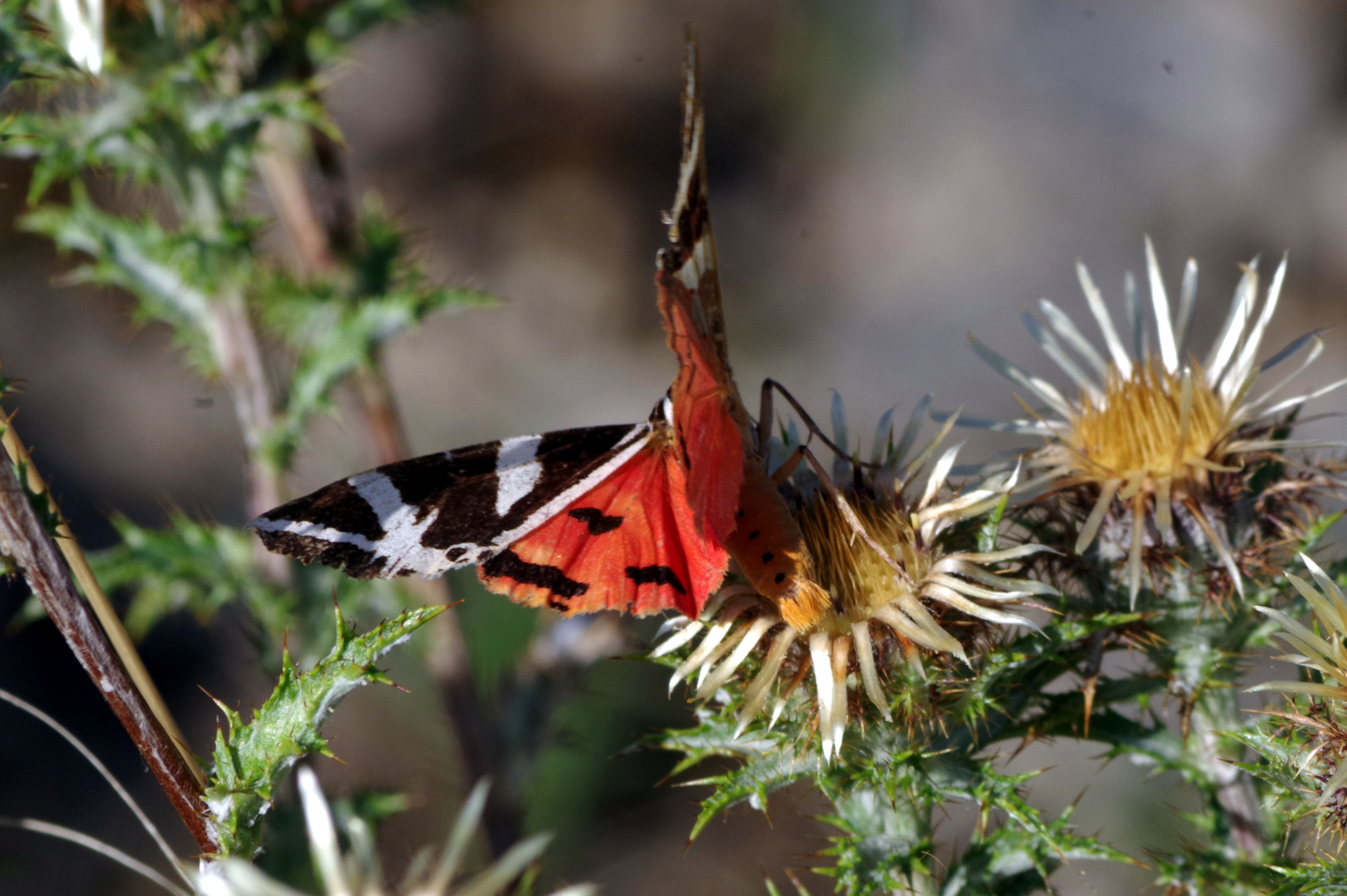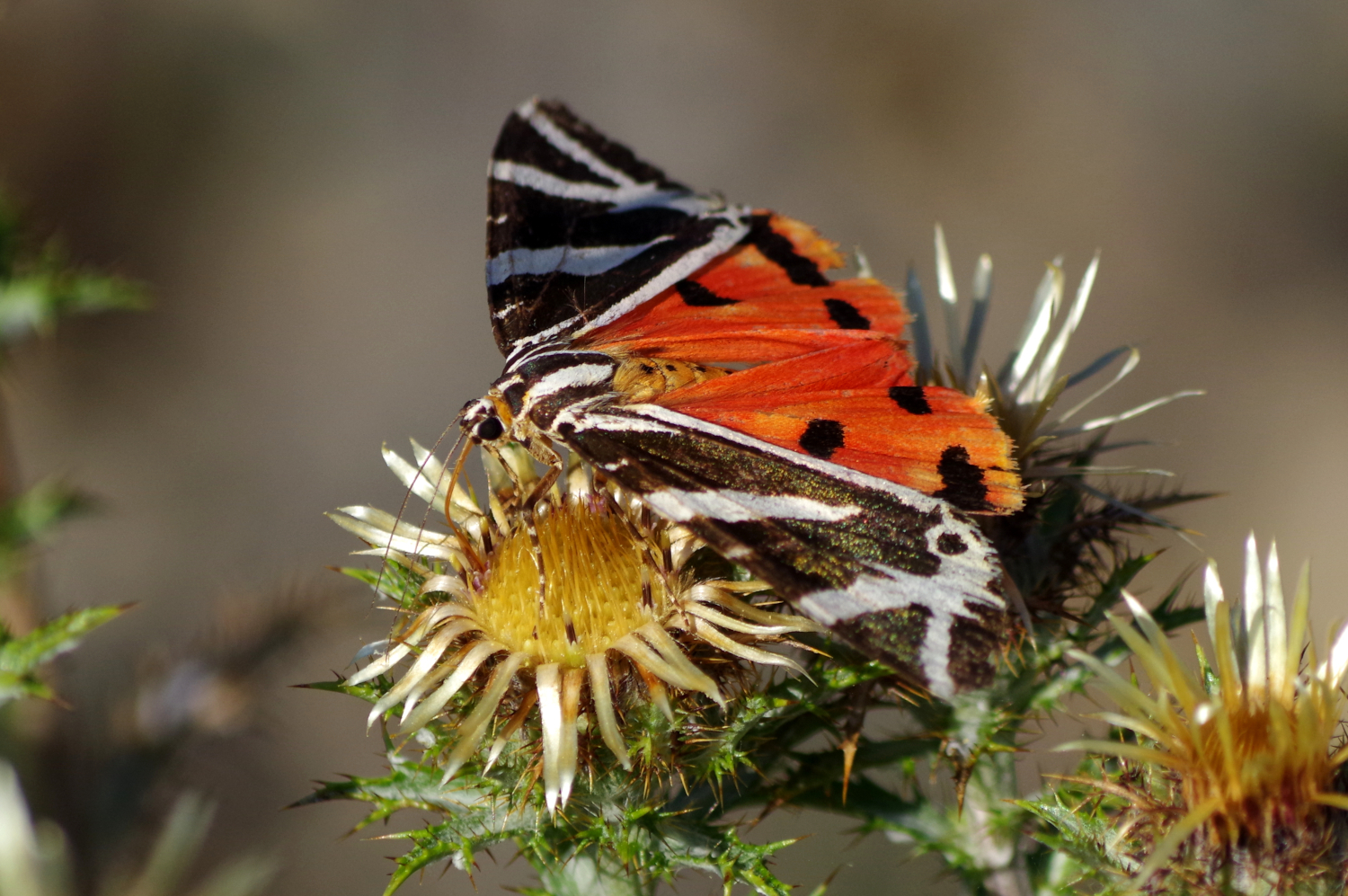 Papillon hétérocère diurne ; Envergure : 45 à 55 mm ; Habitat : lieux chauds et secs, pelouses calcaires, lisières forestières ensoleillées, jardins