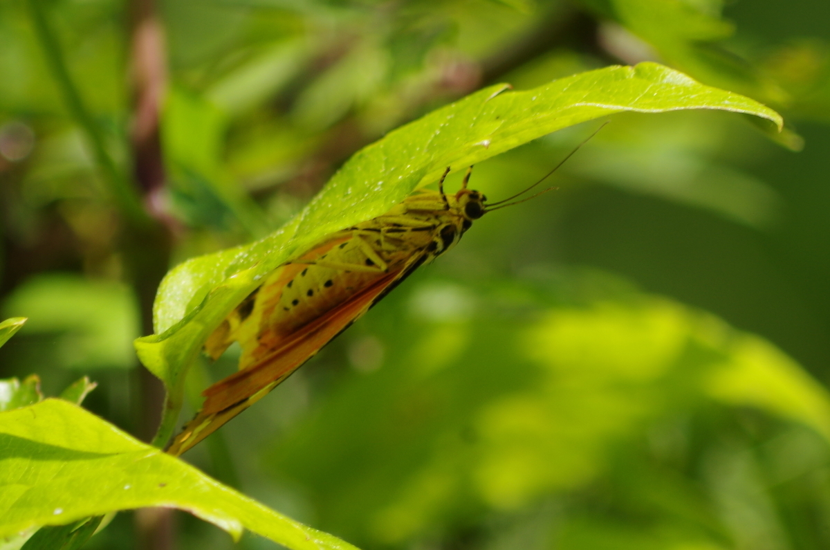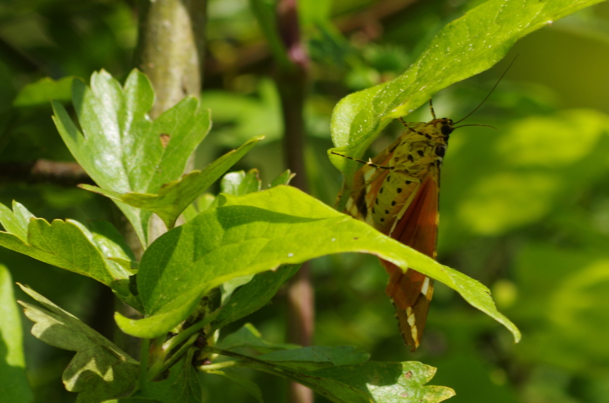 Plantes hôtes : nombreuses plantes, arbustes ou herbes, Orties, Lamiers, Framboisier, Sauge des prés