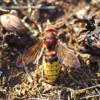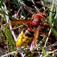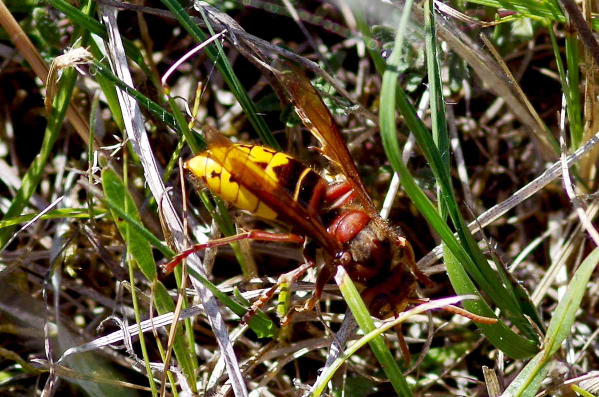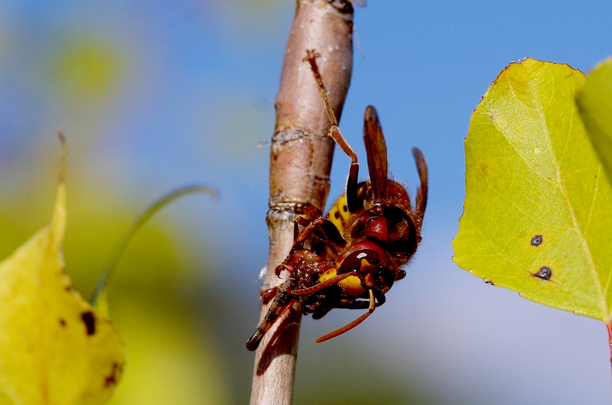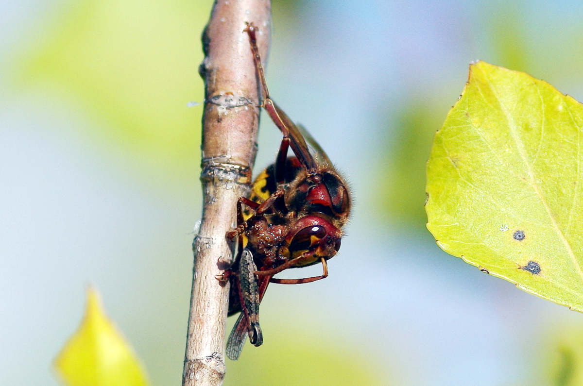 C’est la plus grande des Guêpes d’Europe. Le Frelon européen se nourrit à la fois d’insectes, quand il doit nourrir son couvain (mouches, guêpes, abeilles, sauterelles, libellules), mais les ouvrières adultes sont avant tout phytophages et particulièrement attirées par les sucs végétaux, les fruits bien mûrs. Les frelons ne deviennent dangereux que si on s’approche de leur nid.