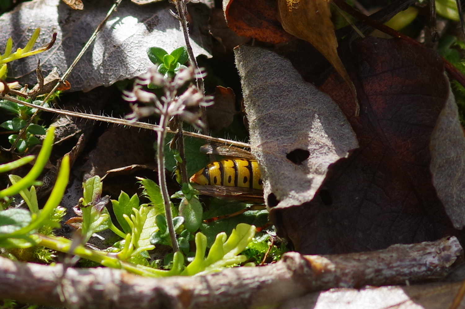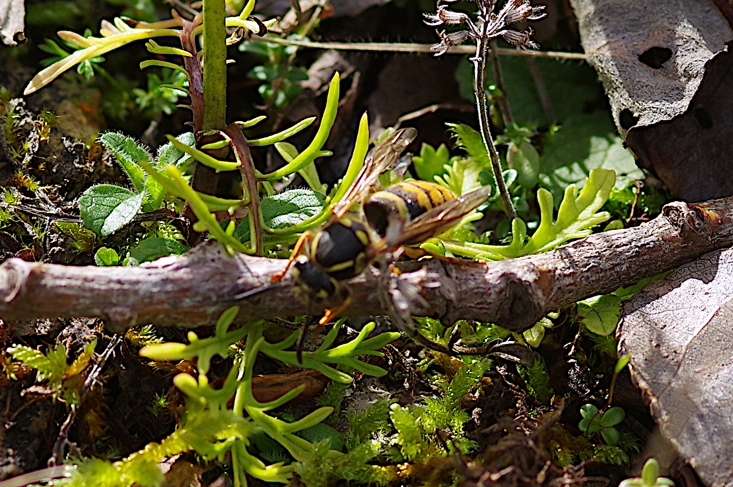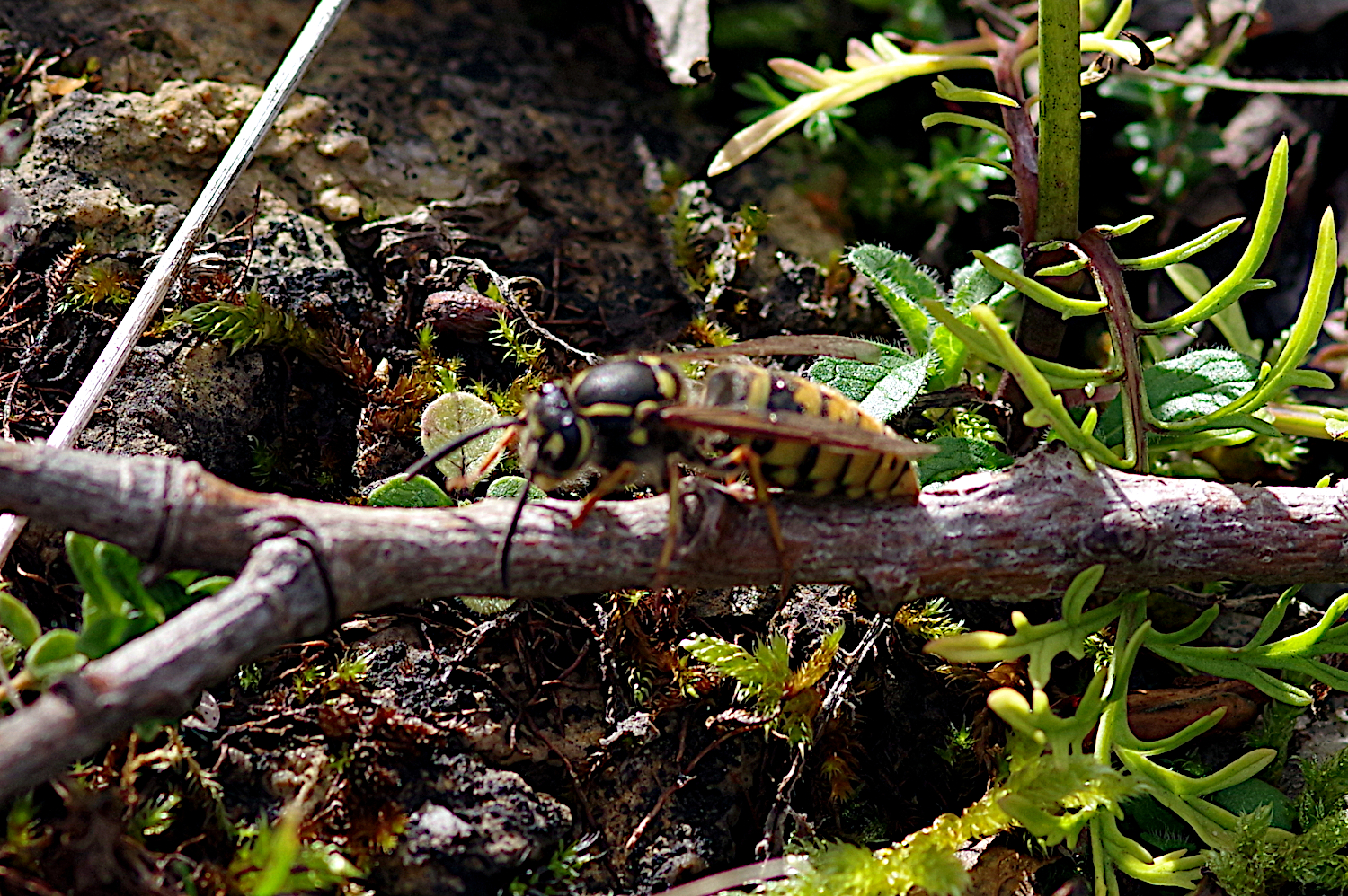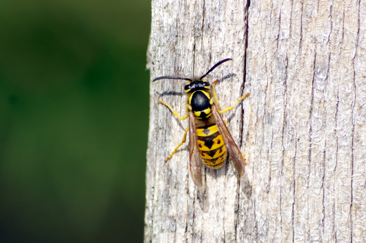 La Guêpe germanique ressemble beaucoup à la Guêpe commune, en un peu plus grand. Elle construit son nid à partir de bois solide (poteau, barrière, vieilles souches…) mais devenu gris après les intempéries.