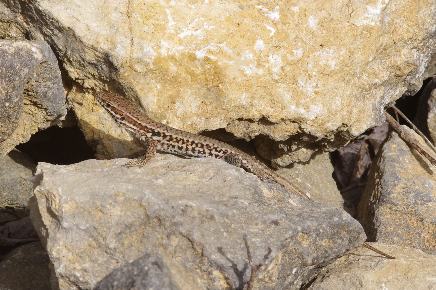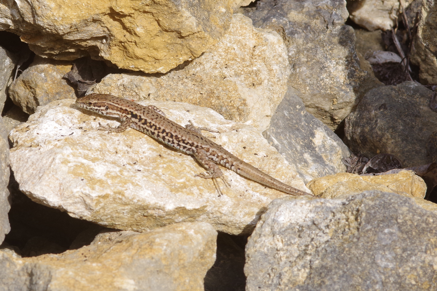 Petit reptile ; Longueur : 18 à 20 cm ; Habitat : rochers, tas de pierres, vieux murs, carrières