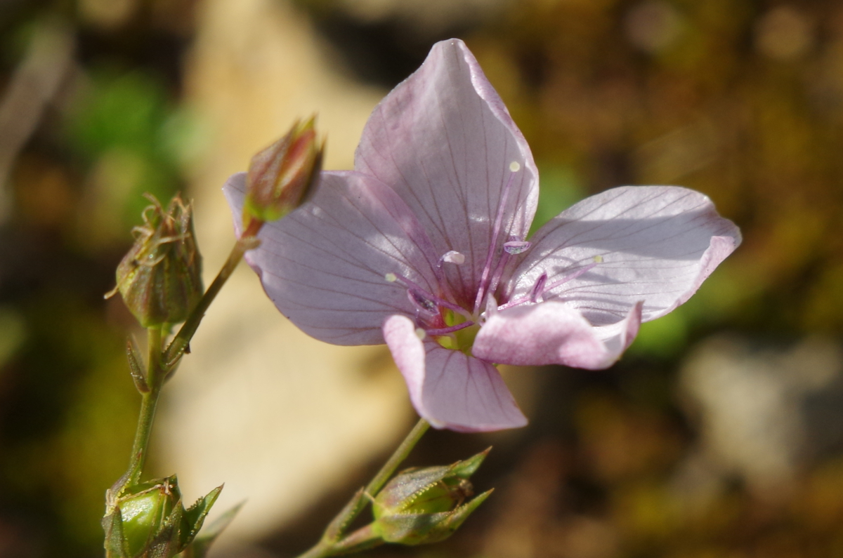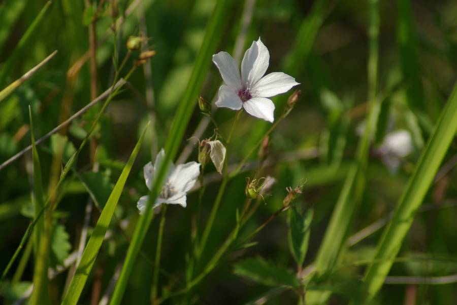 Les fleurs du Lin, roses ou blanches, semblent flotter dans l’air au sommet de leurs tiges grêles. On les trouve de préférence sur les parties rocailleuses du site. Ce Lin est bien plus présent en nombre et dans le temps que le Lin purgatif.