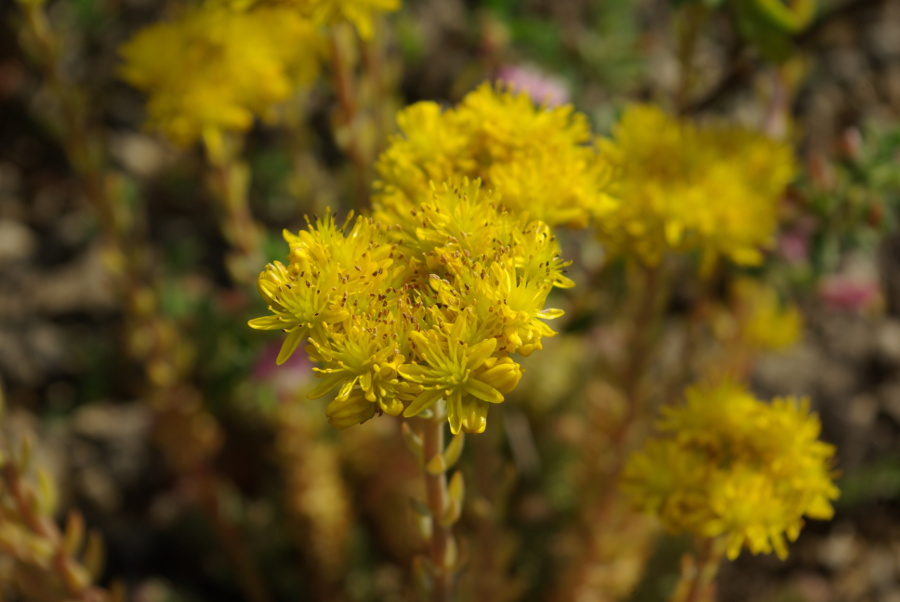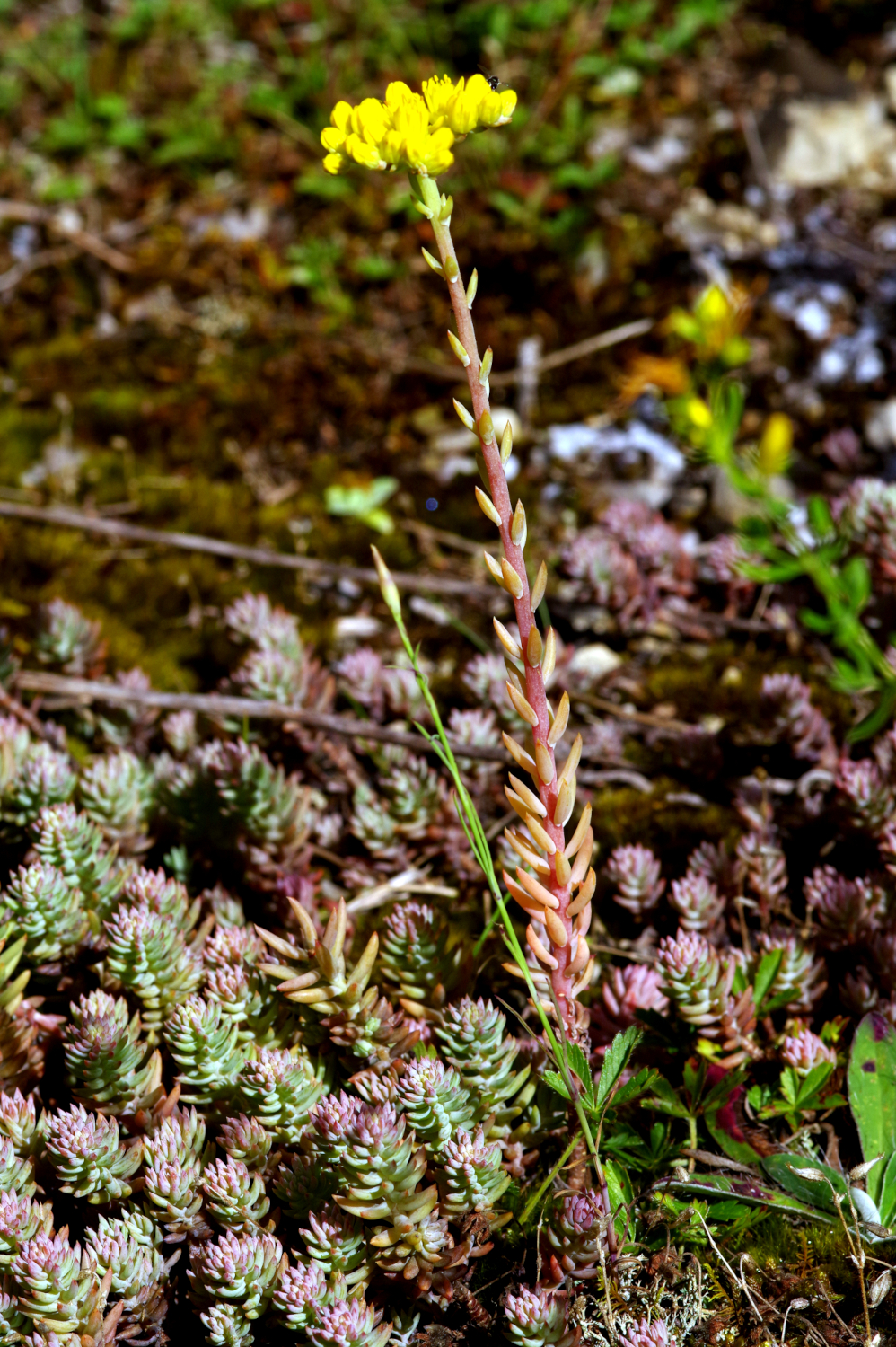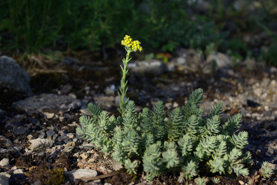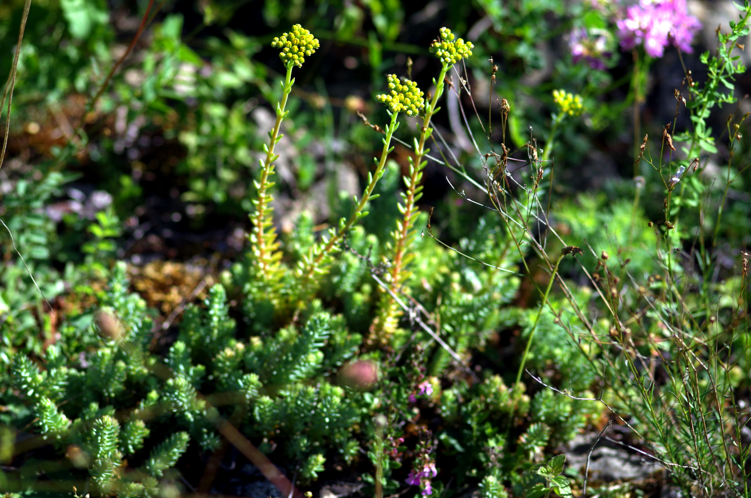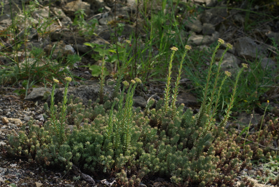 Ce Sedum rupestre, comme son nom l’indique, s’est installé sur une large dalle rocheuse. Il fait partie des sédums utilisés pour végétaliser les toitures végétales.