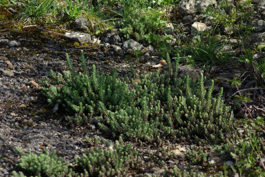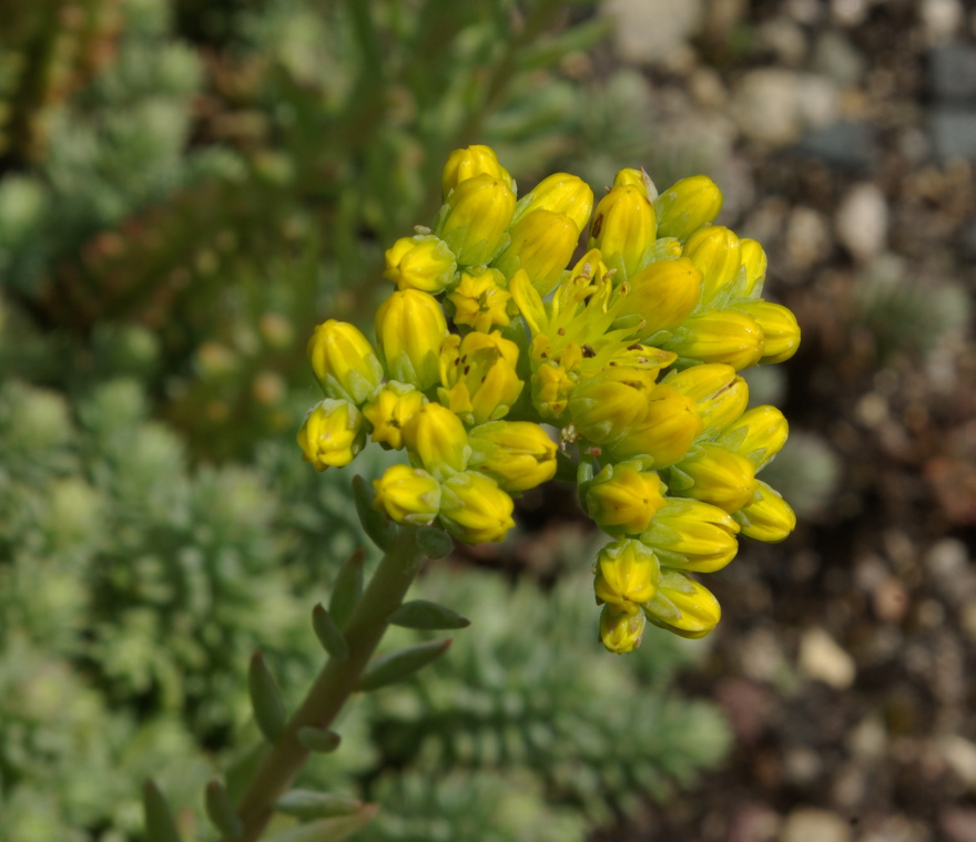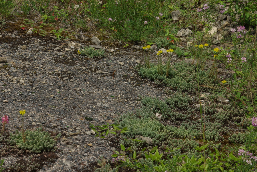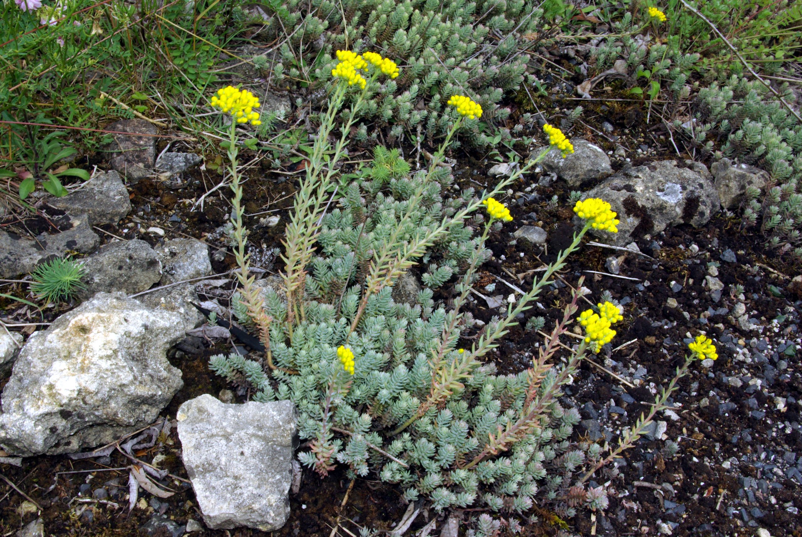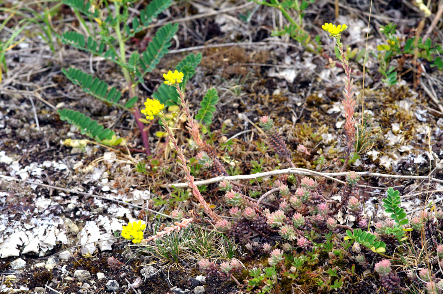 Ce Sedum rupestre, comme son nom l’indique, s’est installé sur une large dalle rocheuse. Il fait partie des sédums utilisés pour végétaliser les toitures végétales.