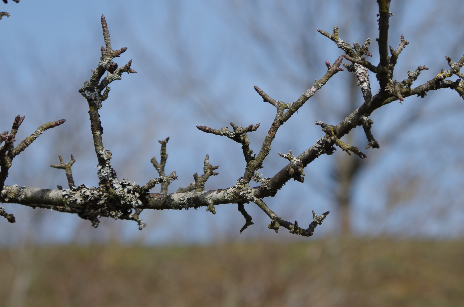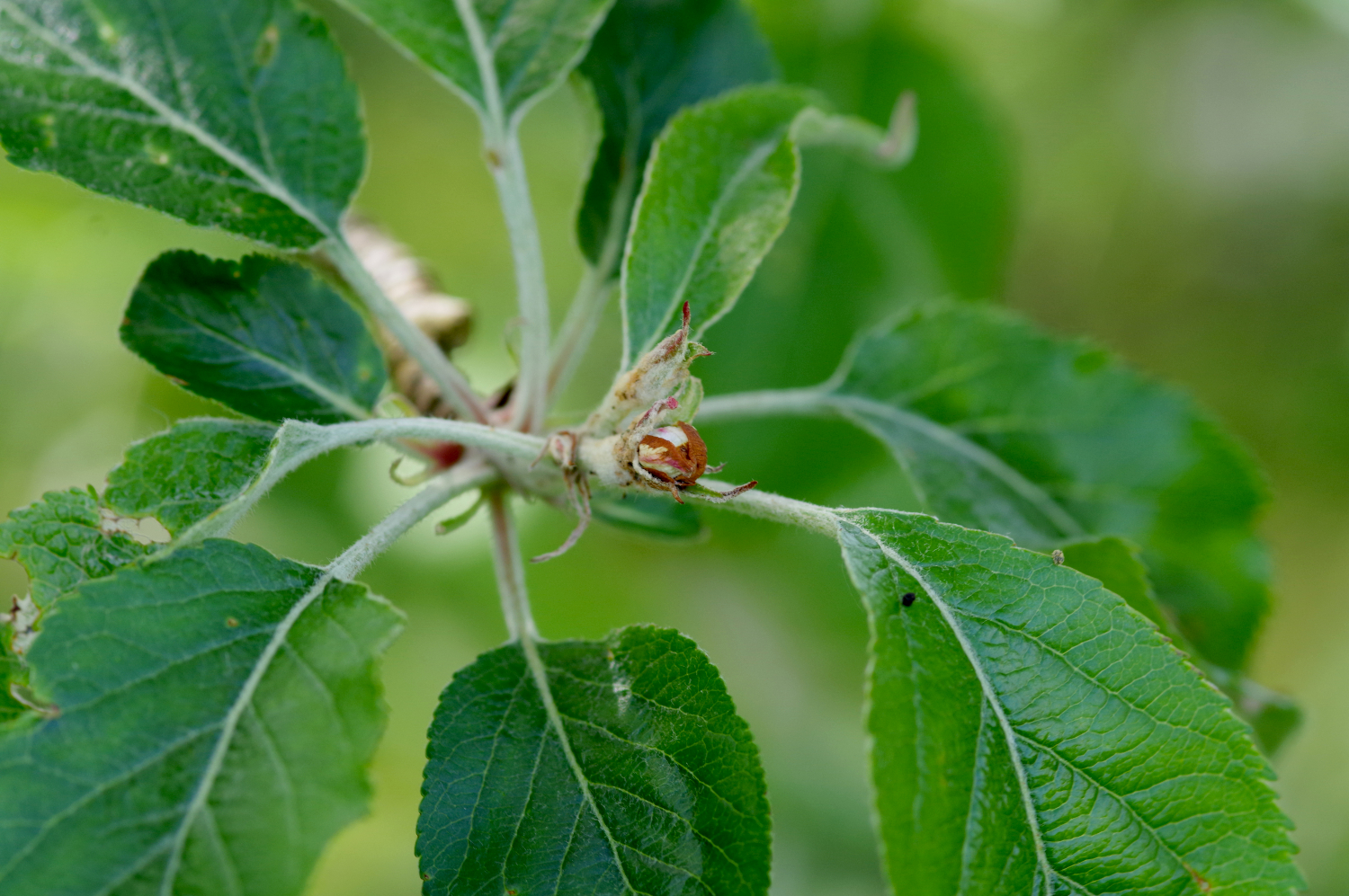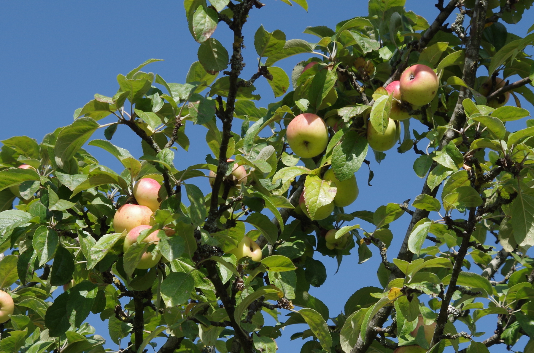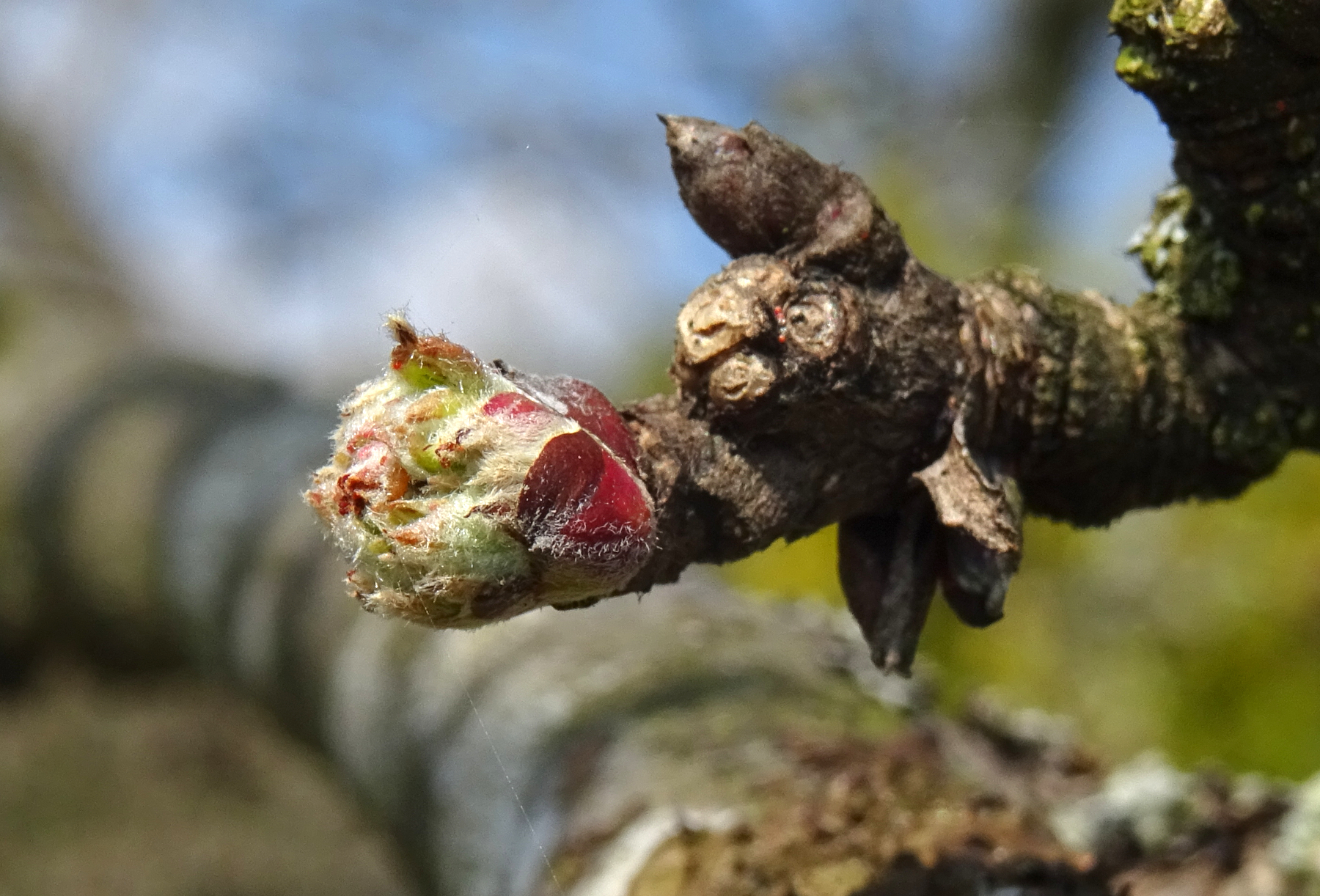 Pommier sauvage ou Pommier des bois, ce n’est pas l’ancêtre de nos pommiers cultivés qui viennent principalement d’une espèce d’Asie centrale. Sa silhouette est très irrégulière. Les fleurs sont roses en bouton puis blanches quand elles sont épanouies. Les pommes, vert-jaune, dures et très acides, sont petites (3-4 cm). Il peut être envahi par le Gui.