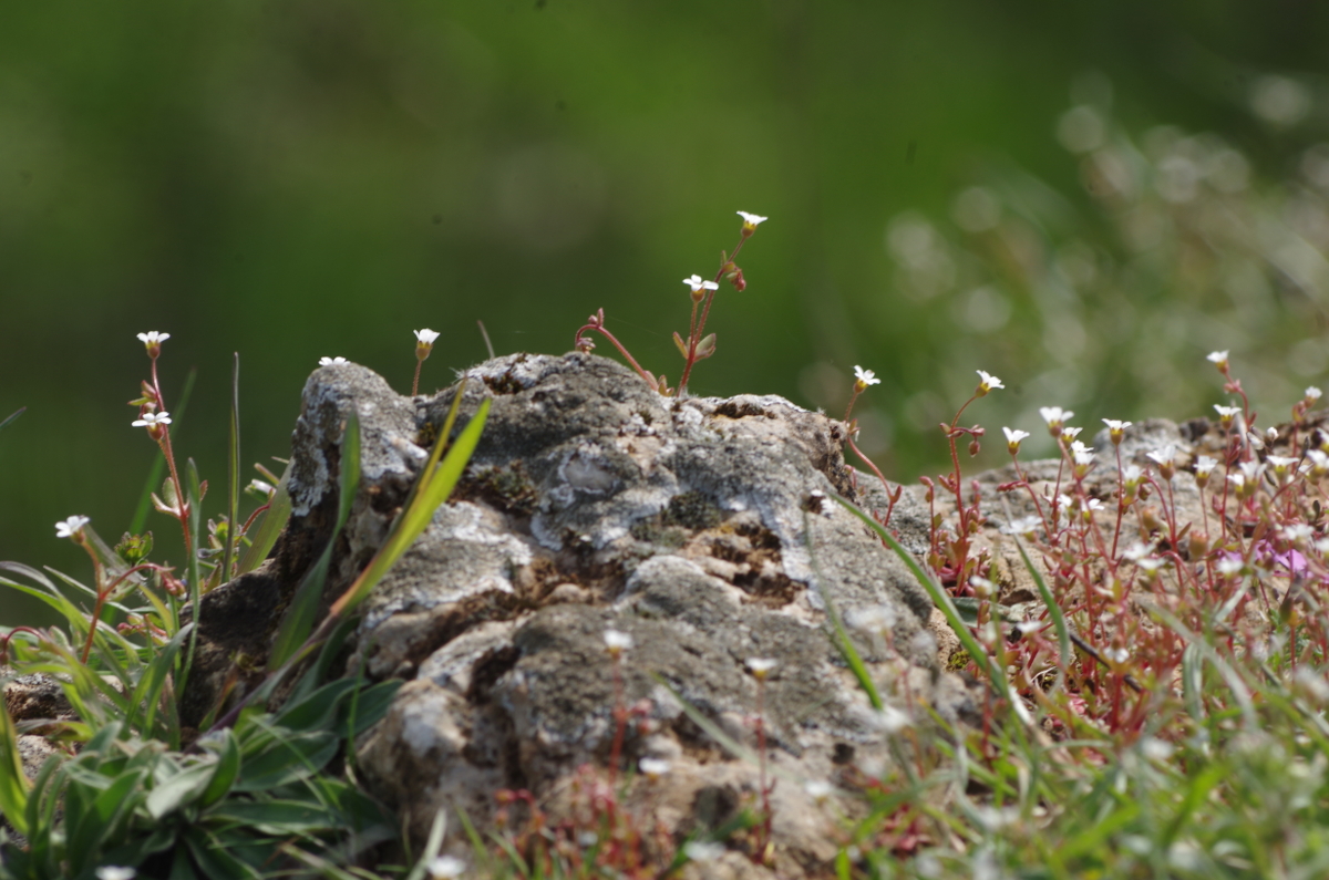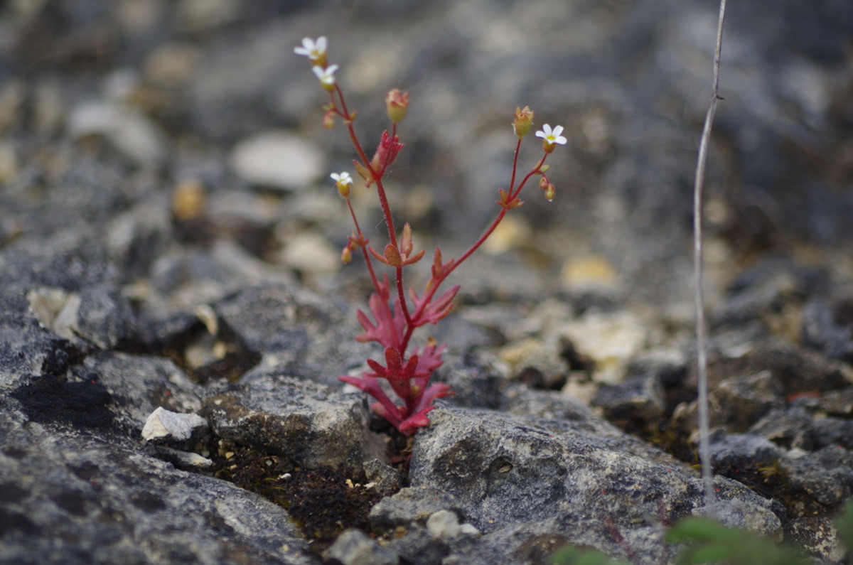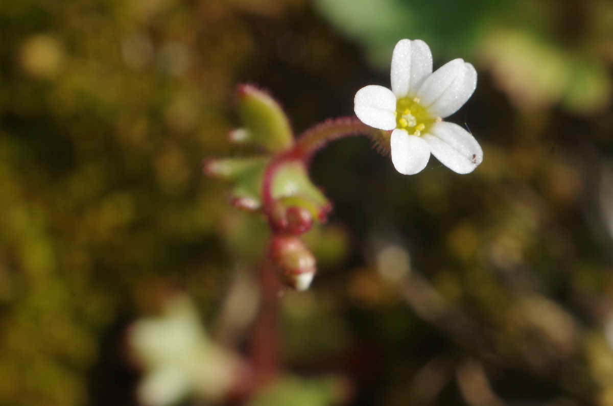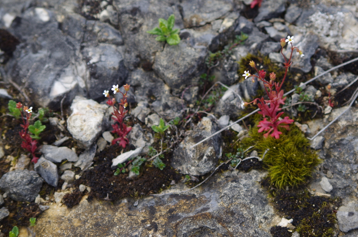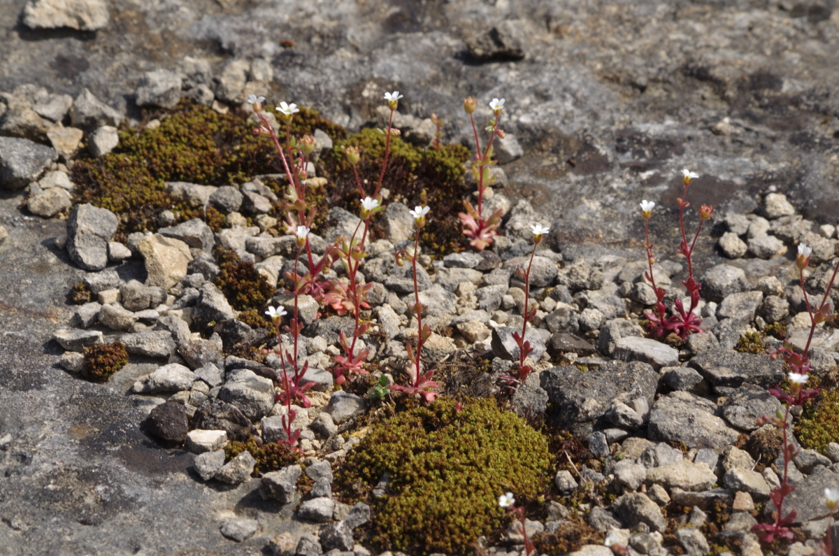 Saxifrage, c’est-à-dire « qui fracture la roche », c’est bien ce que semble faire cette petite plante d’apparence pourtant fragile. Sa rosette basale profite de la moindre fissure et se plaît au milieu des mousses. C’est donc typiquement une plante pionnière.
