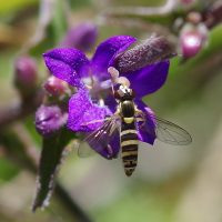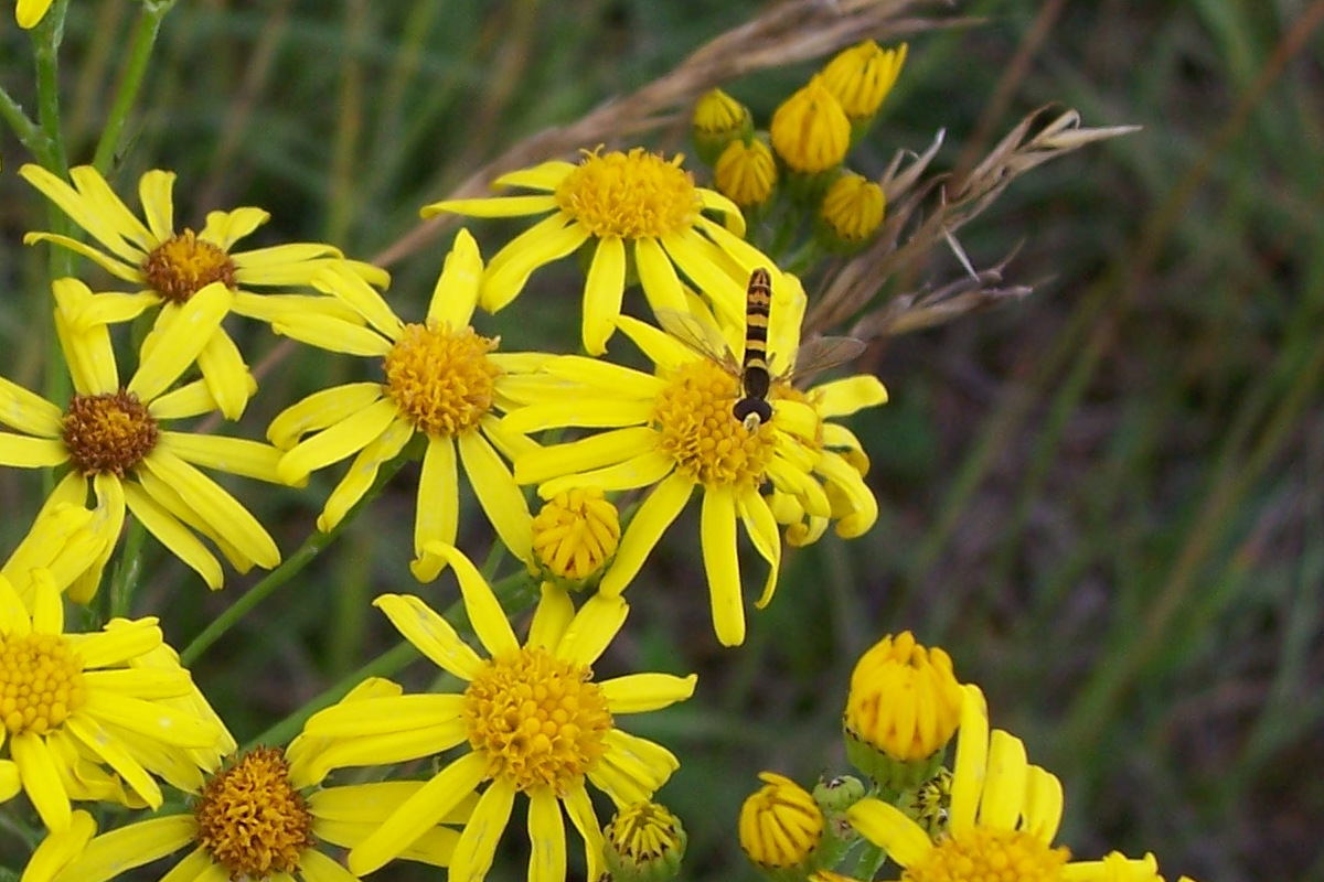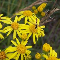 Ce Syrphe porte-plume, comme tous les syrphes, revêt les couleurs jaunes et noires des Guêpes ce qui dissuade ses prédateurs : c’est ce qu’on appelle le mimétisme batésien. Elle fait partie des pollinisateurs très actifs comme on le voit sur les photos ci-dessous.