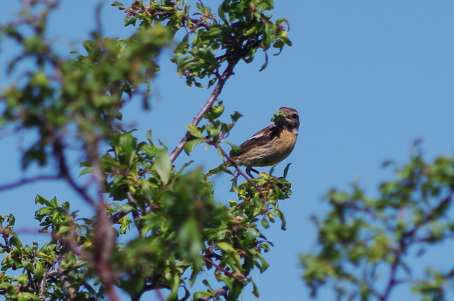 30 mai 2020. La femelle a trouvé une proie pour ses petits dont le nid est probablement au pied de ce buisson.