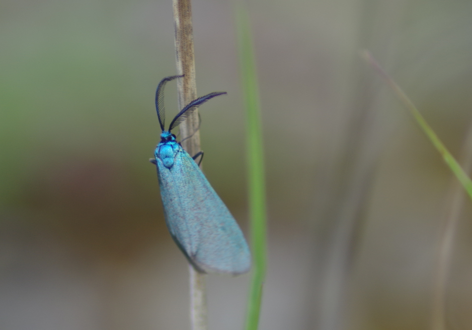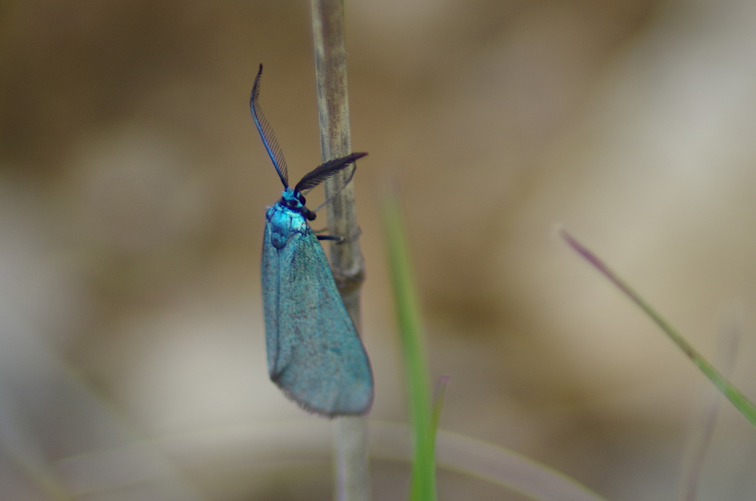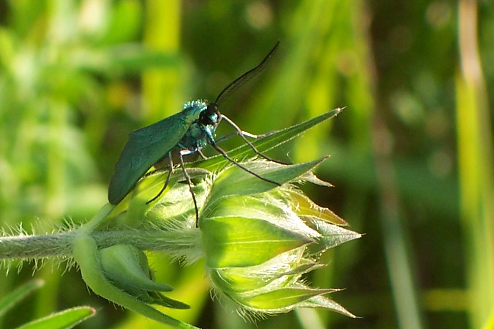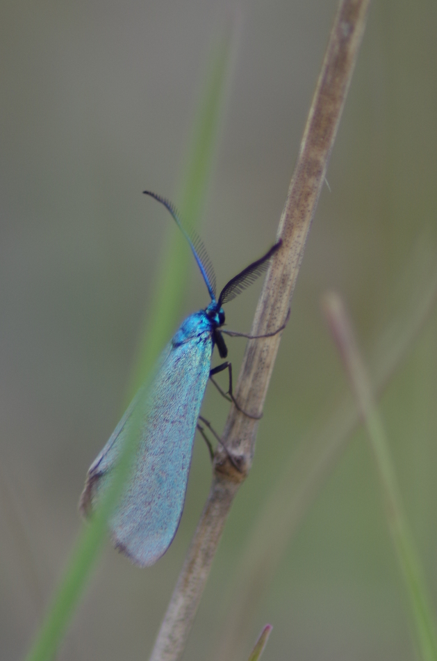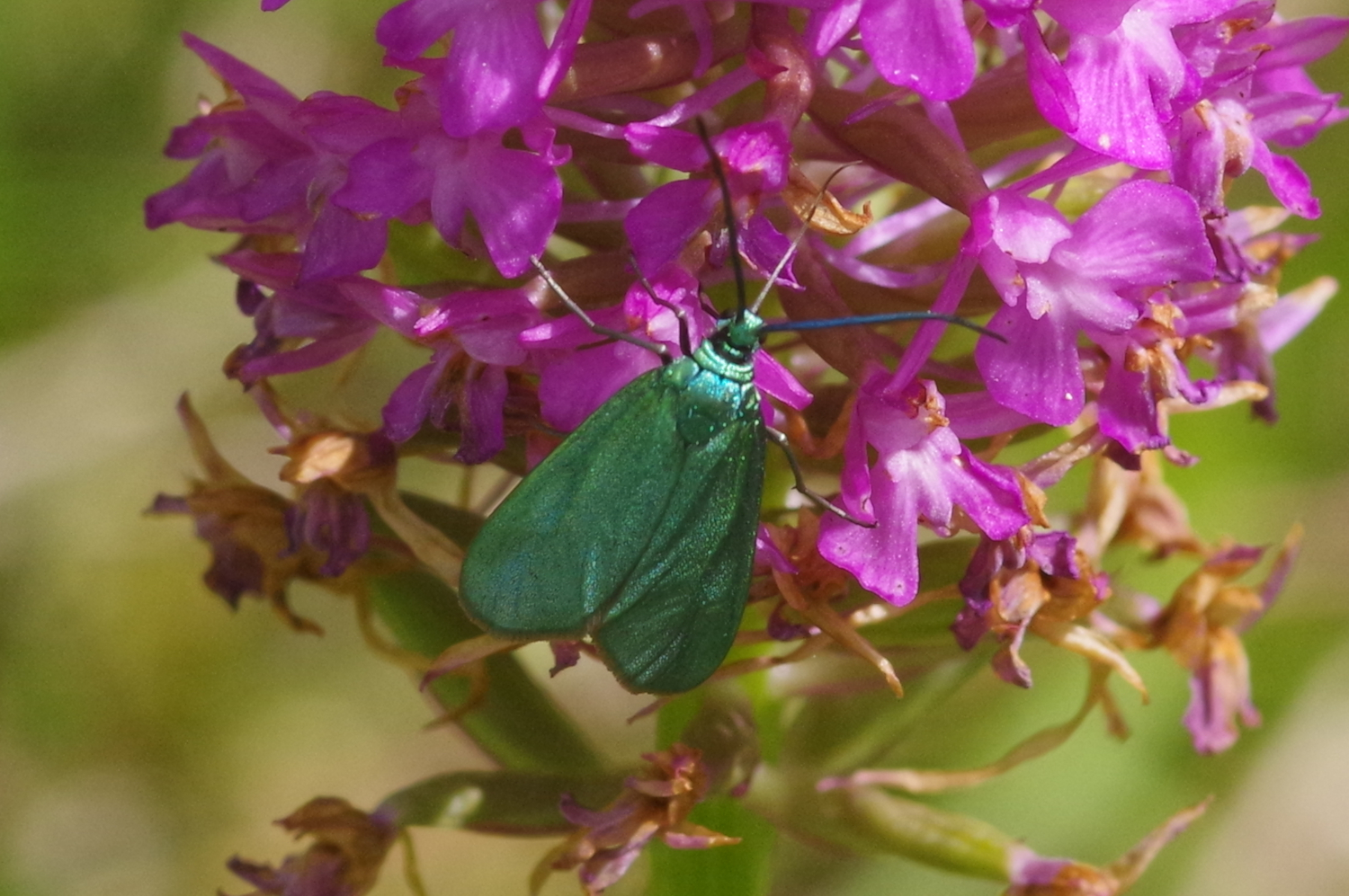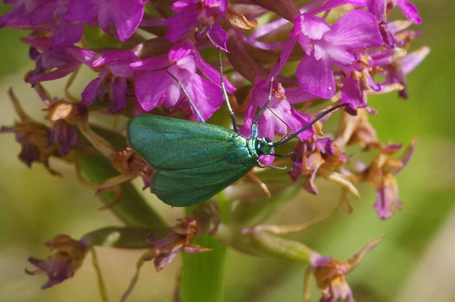 La Turquoise est l’un des huit Zygénidés présents sur les pelouses calcaires de Lorry-Mardigny mais c’est le seul de cette famille à montrer ces reflets métallisés allant du bleu au vert alors que les autres Zygènes du site arborent des tons rouges et noirs. La détermination des espèces de ce genre est délicate mais il s’agit probablement à Lorry-Mardigny de la Turquoise de la Globulaire (Jordanita globulariae).