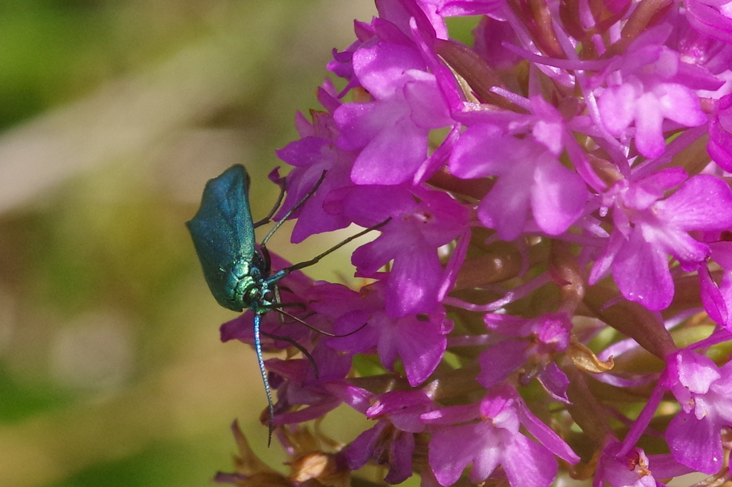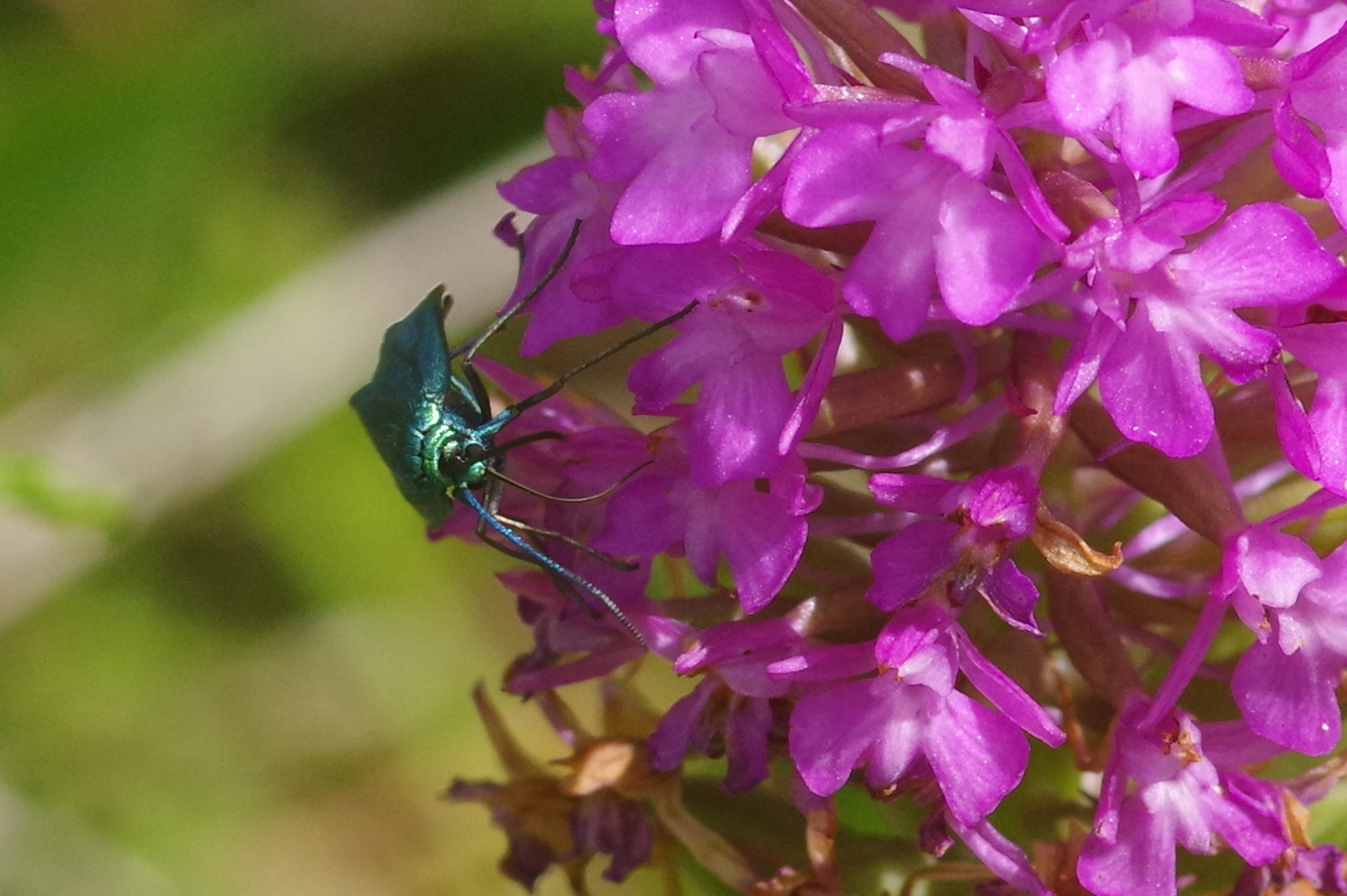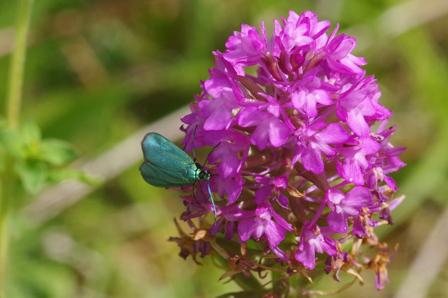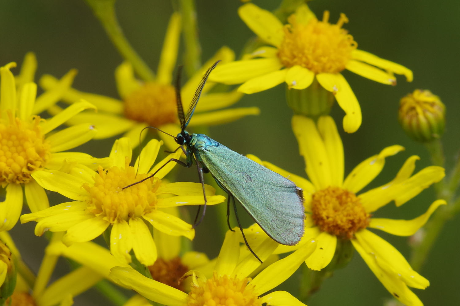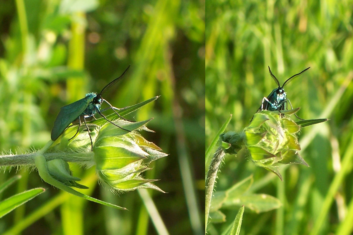 La Turquoise est l’un des huit Zygénidés présents sur les pelouses calcaires de Lorry-Mardigny mais c’est le seul de cette famille à montrer ces reflets métallisés allant du bleu au vert alors que les autres Zygènes du site arborent des tons rouges et noirs. La détermination des espèces de ce genre est délicate mais il s’agit probablement à Lorry-Mardigny de la Turquoise de la Globulaire (Jordanita globulariae).