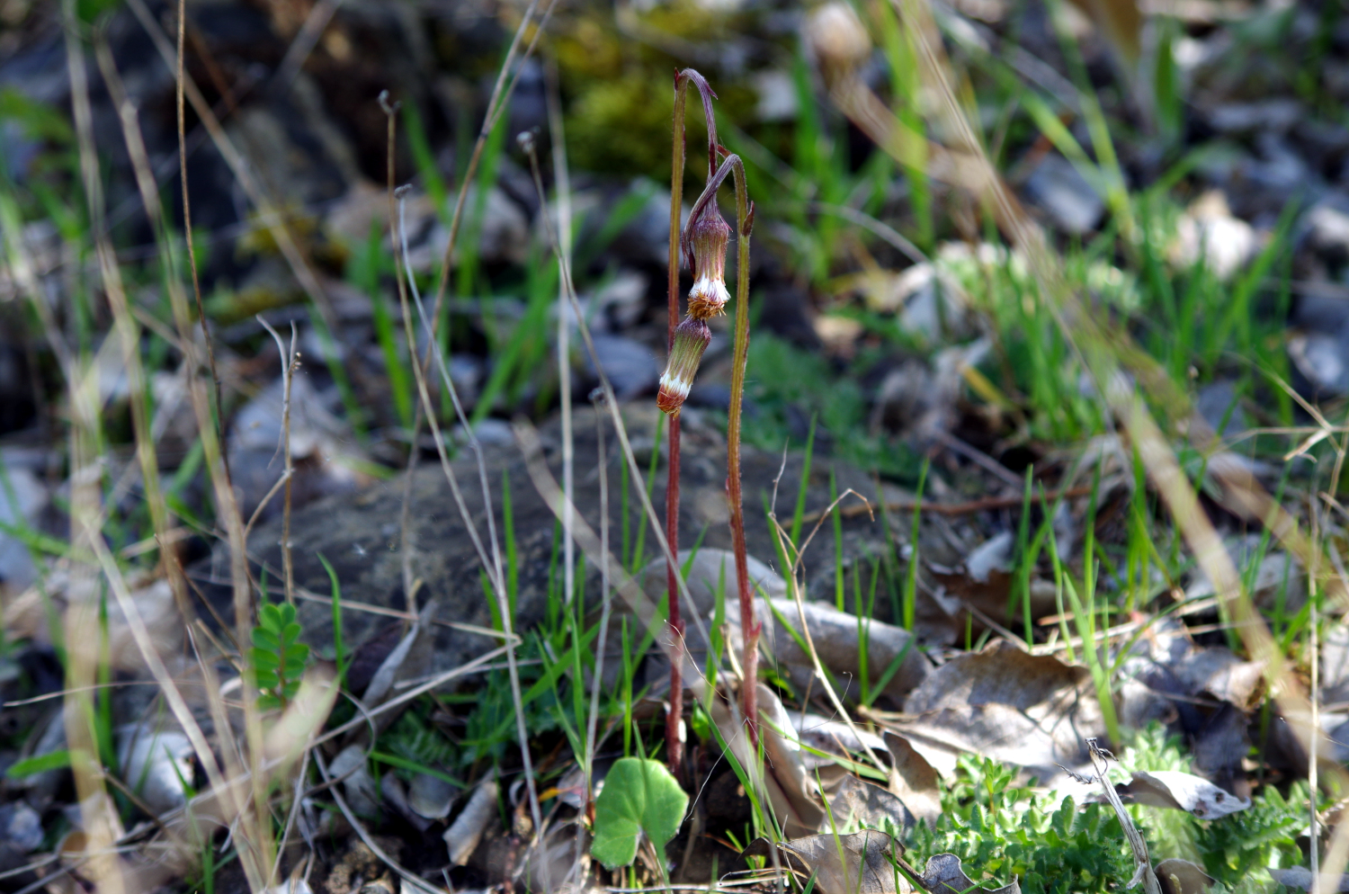 L’une des premières plantes à fleurir sur la côte de Lorry mais présente seulement dans quelques endroits très perturbés par la carrière de la fin du XXe siècle car c’est une plante pionnière typique des sols instables. La hampe florale, couverte d’écailles, apparaît avant les feuilles.